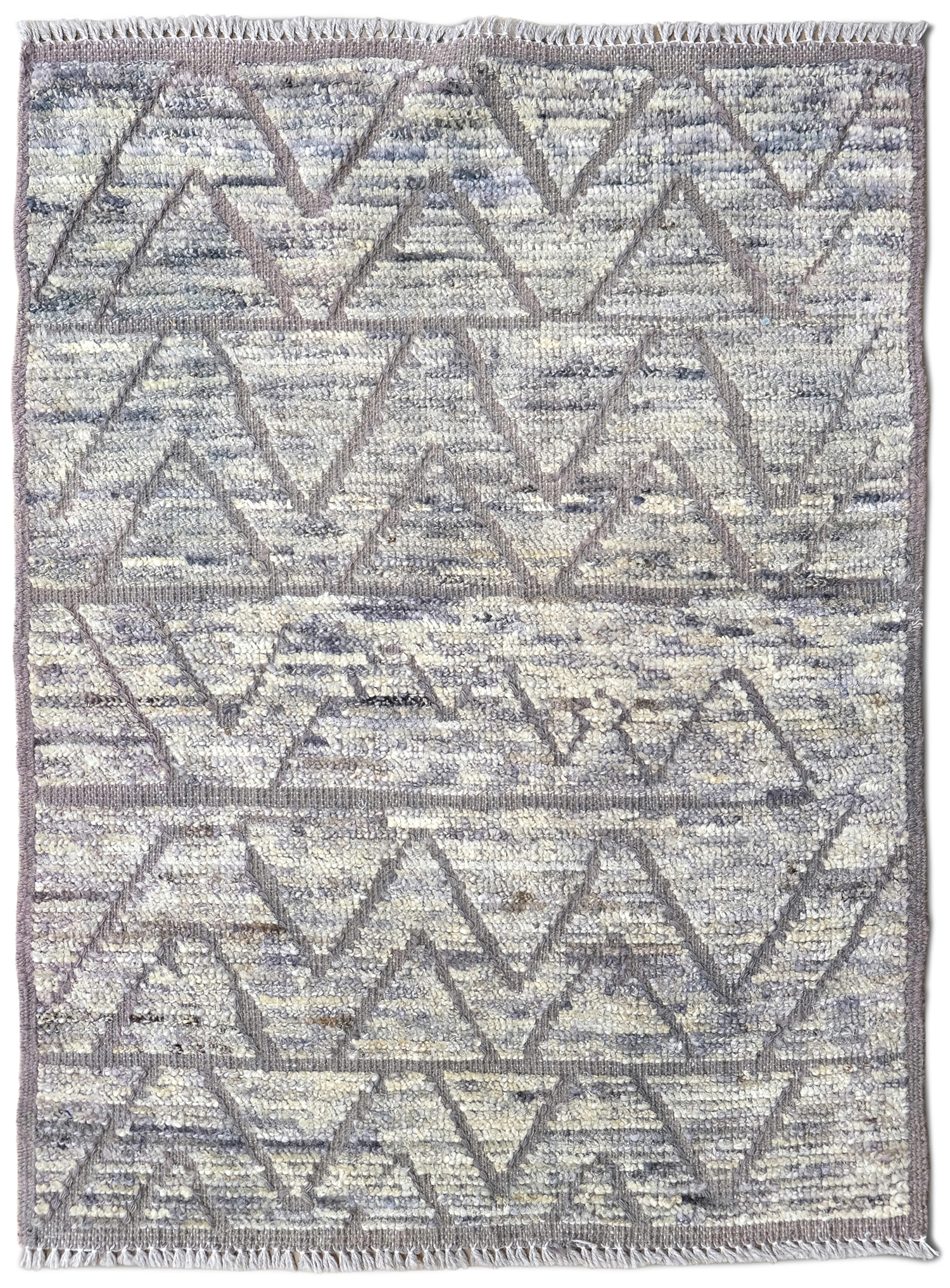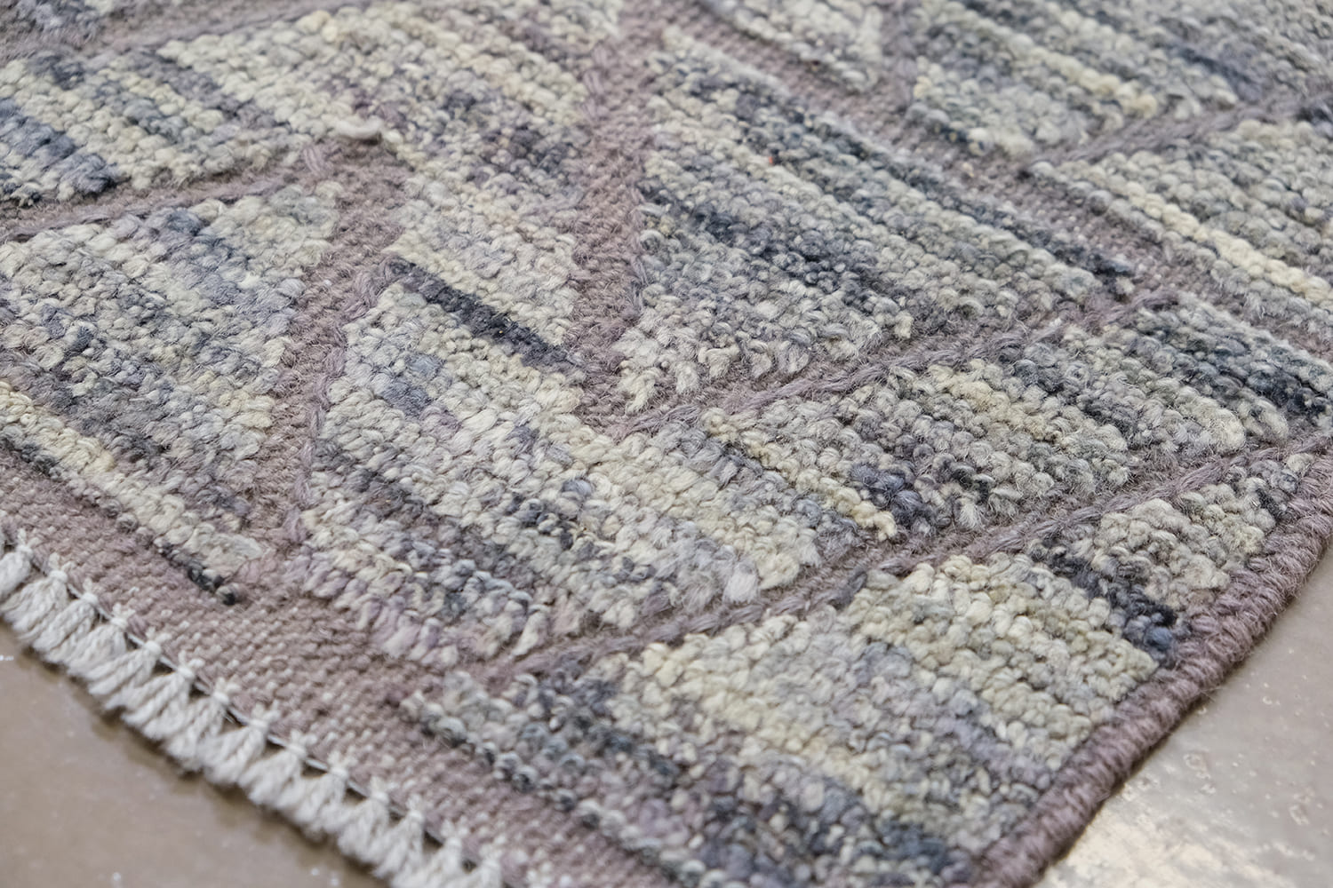 Hand-knotted using hand-spun wool pile. This rug offers a rich texture, resulting in a soothing feel underfoot. It's a blend of traditional craftsmanship with a contemporary design, making it a versatile option for many home decors.