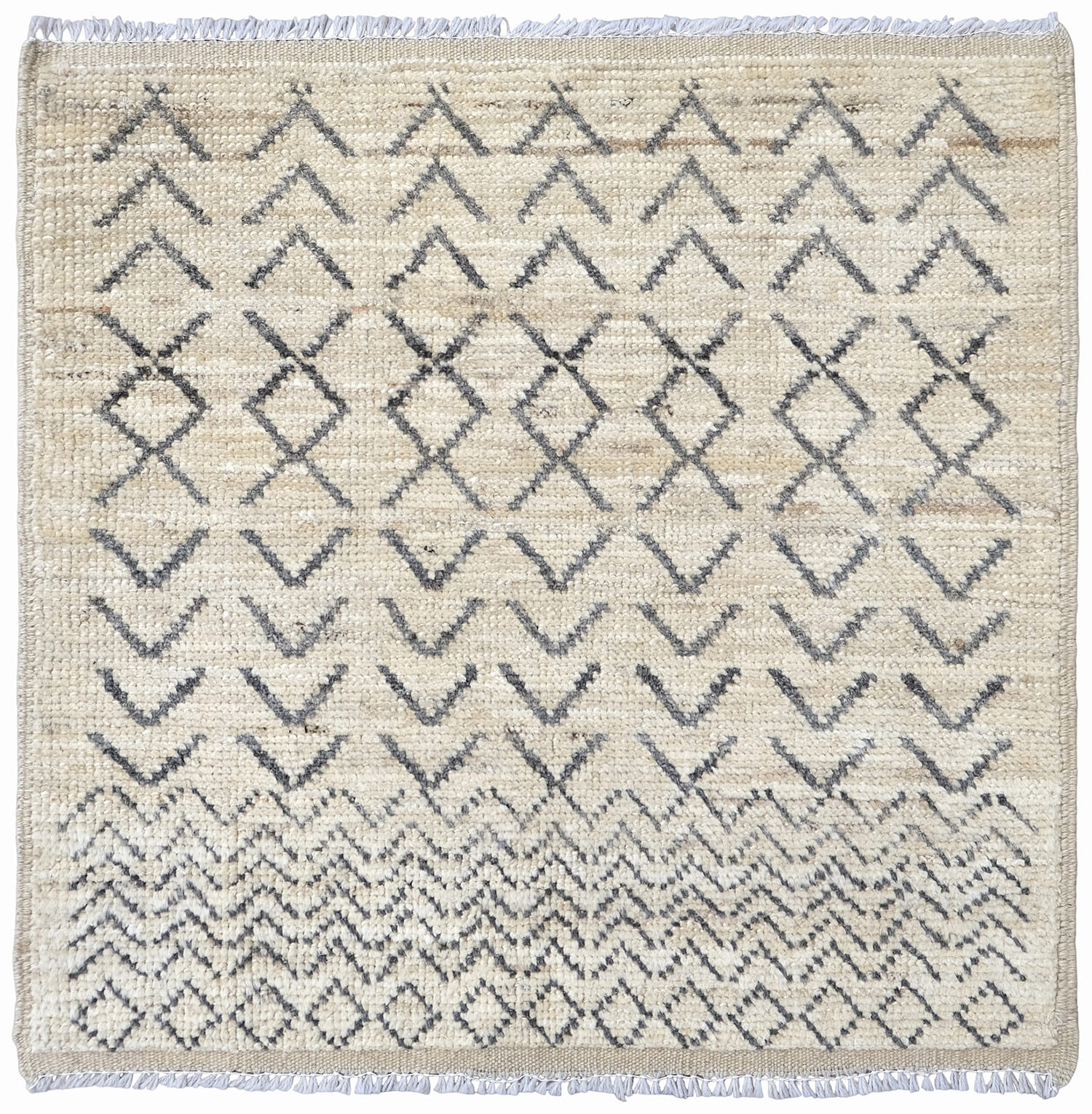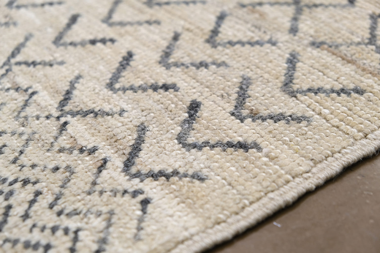 Hand-knotted using hand-spun wool pile. This rug offers a rich texture, resulting in a soothing feel underfoot. It's a blend of traditional craftsmanship with a contemporary design, making it a versatile option for many home decors.