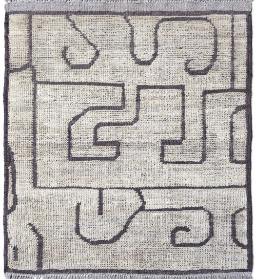 Hand-knotted using hand-spun wool pile. This rug offers a rich texture, resulting in a soothing feel underfoot. It's a blend of traditional craftsmanship with a contemporary design, making it a versatile option for many home decors.