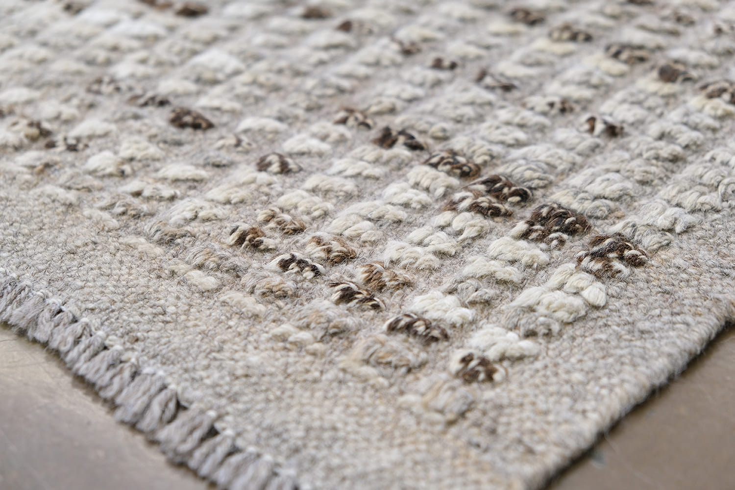Hand-knotted using hand-spun wool pile. This rug offers a rich texture, resulting in a soothing feel underfoot. It's a blend of traditional craftsmanship with a contemporary design, making it a versatile option for many home decors.