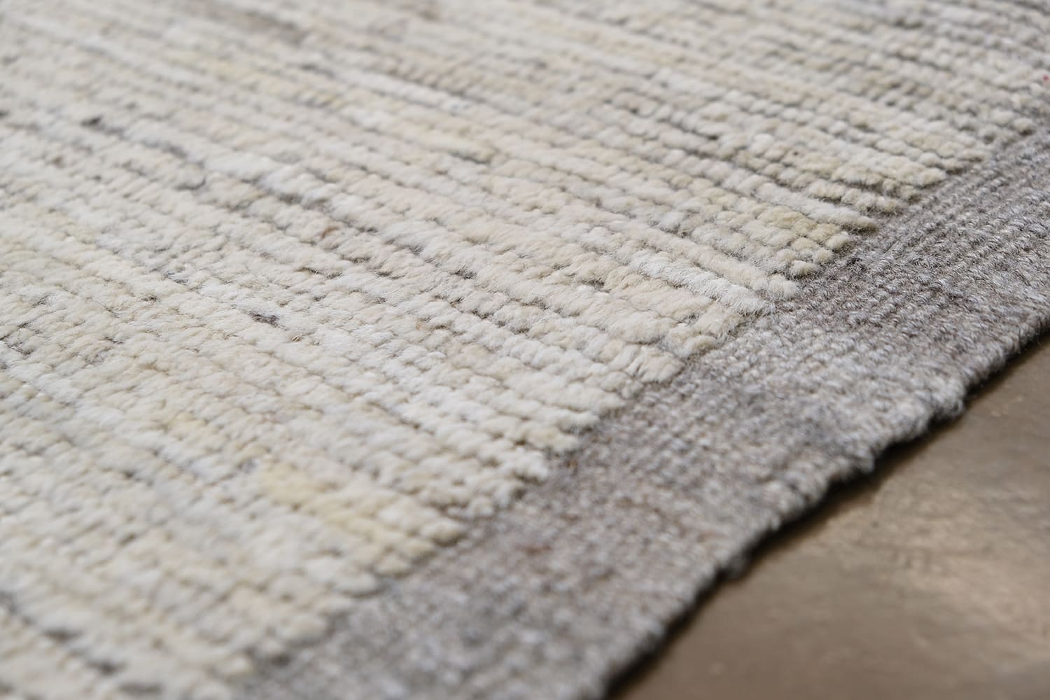 Hand-knotted using hand-spun wool pile. This rug offers a rich texture, resulting in a soothing feel underfoot. It's a blend of traditional craftsmanship with a contemporary design, making it a versatile option for many home decors.