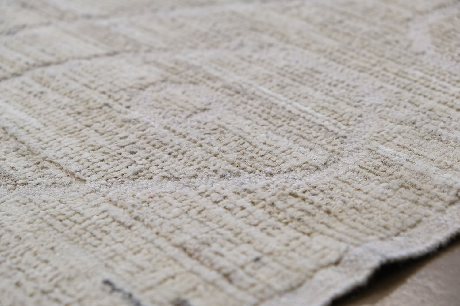 Hand-knotted using hand-spun wool pile. This rug offers a rich texture, resulting in a soothing feel underfoot. It's a blend of traditional craftsmanship with a contemporary design, making it a versatile option for many home decors.