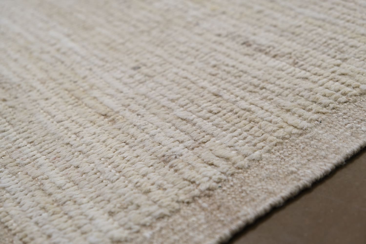 Hand-knotted using hand-spun wool pile. This rug offers a rich texture, resulting in a soothing feel underfoot. It's a blend of traditional craftsmanship with a contemporary design, making it a versatile option for many home decors.