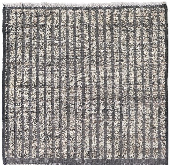 Hand-knotted using hand-spun wool pile. This rug offers a rich texture, resulting in a soothing feel underfoot. It's a blend of traditional craftsmanship with a contemporary design, making it a versatile option for many home decors.