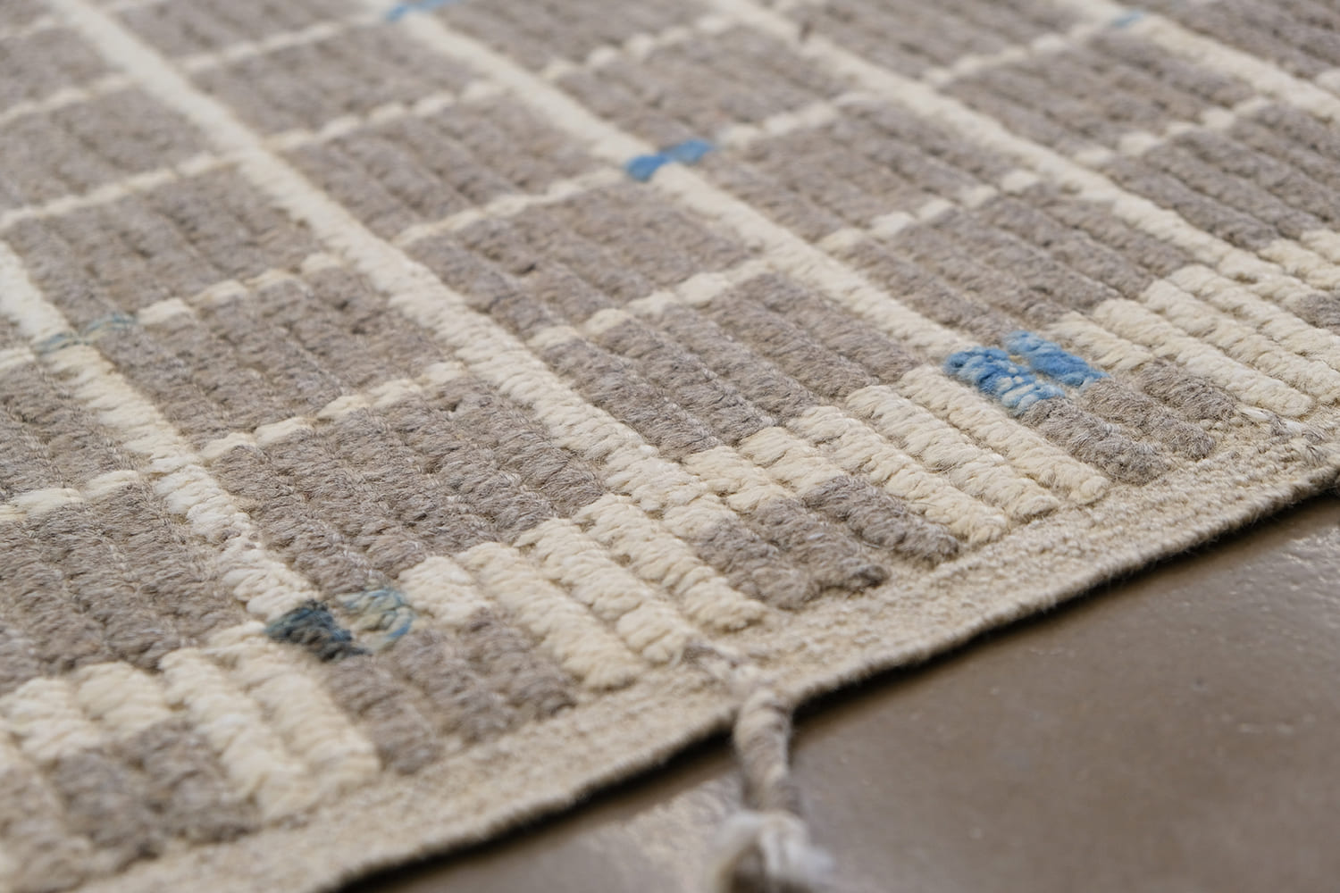 Hand-knotted using hand-spun wool pile. This rug offers a rich texture, resulting in a soothing feel underfoot. It's a blend of traditional craftsmanship with a contemporary design, making it a versatile option for many home decors.