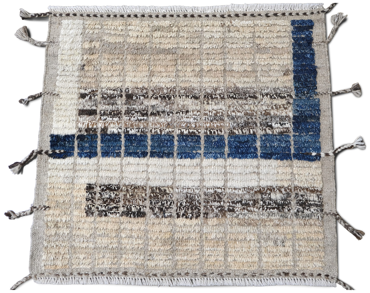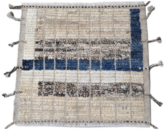 Hand-knotted using hand-spun wool pile. This rug offers a rich texture, resulting in a soothing feel underfoot. It's a blend of traditional craftsmanship with a contemporary design, making it a versatile option for many home decors.