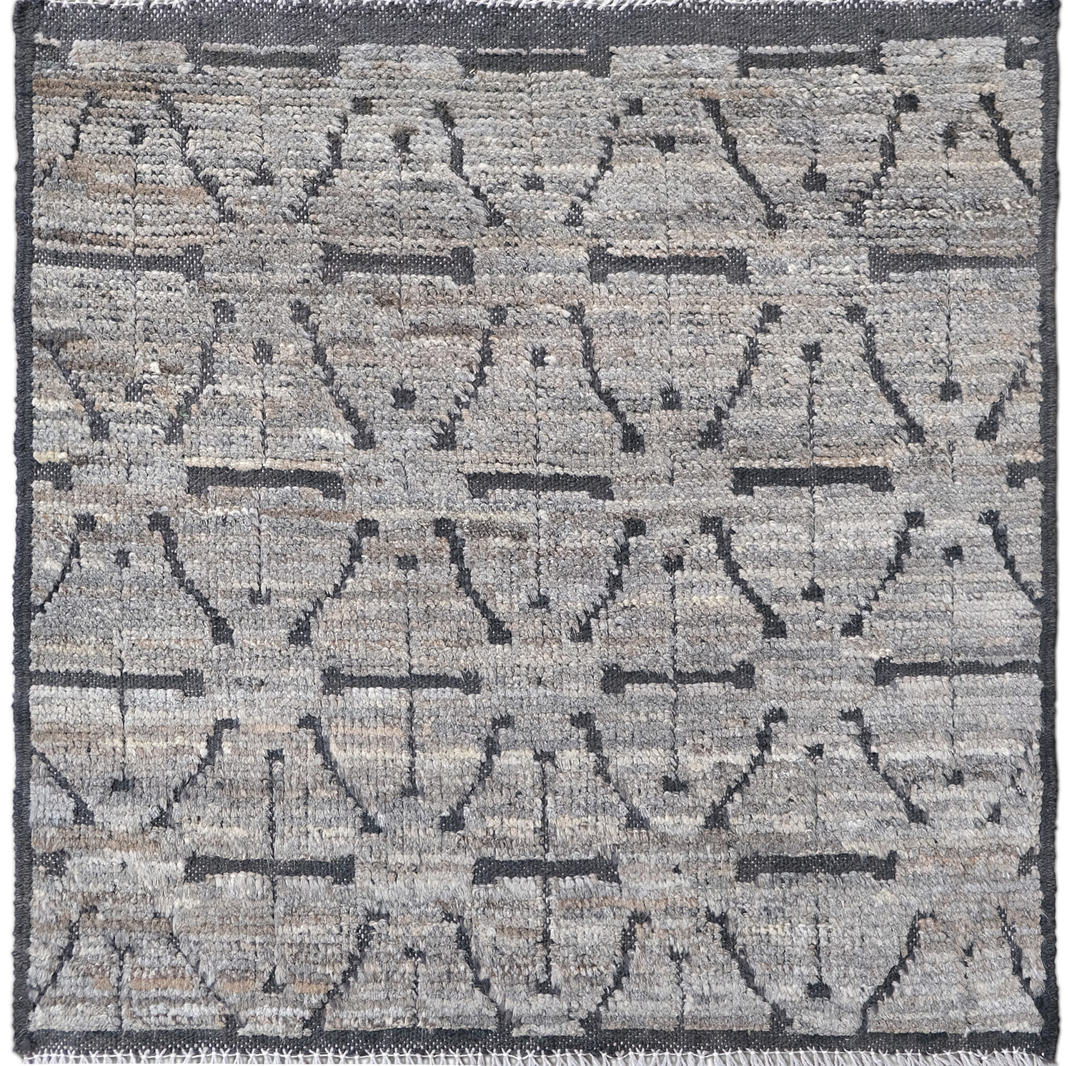 Hand-knotted using hand-spun wool pile. This rug offers a rich texture, resulting in a soothing feel underfoot. It's a blend of traditional craftsmanship with a contemporary design, making it a versatile option for many home decors.