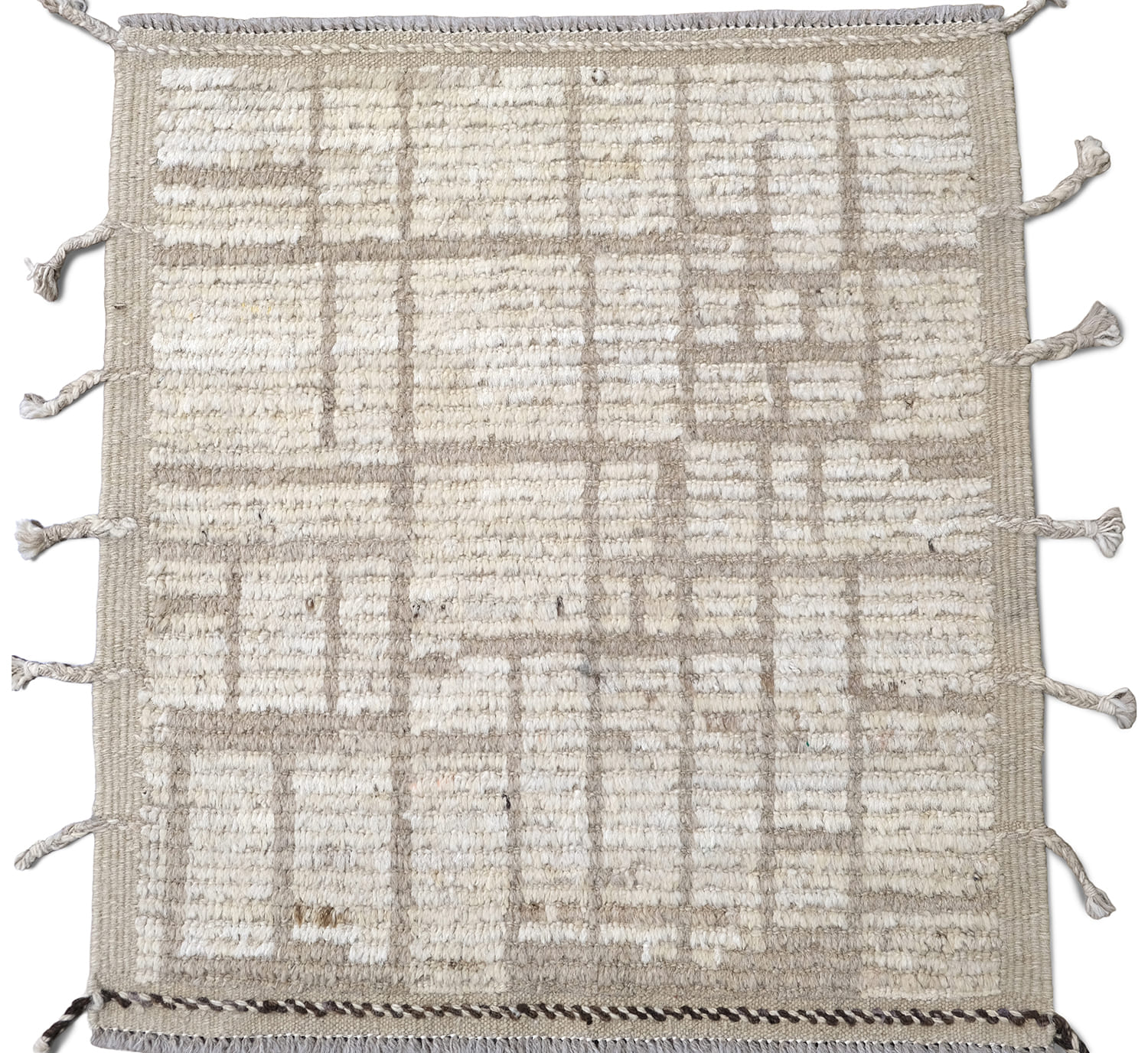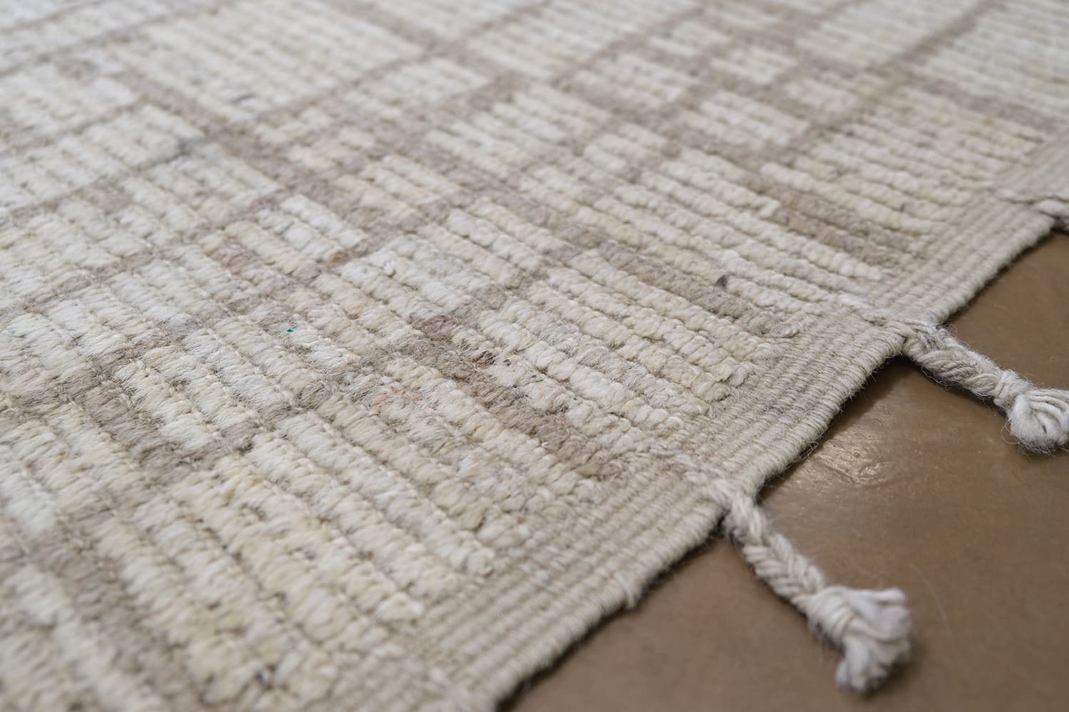 Hand-knotted using hand-spun wool pile. This rug offers a rich texture, resulting in a soothing feel underfoot. It's a blend of traditional craftsmanship with a contemporary design, making it a versatile option for many home decors.