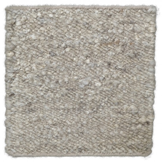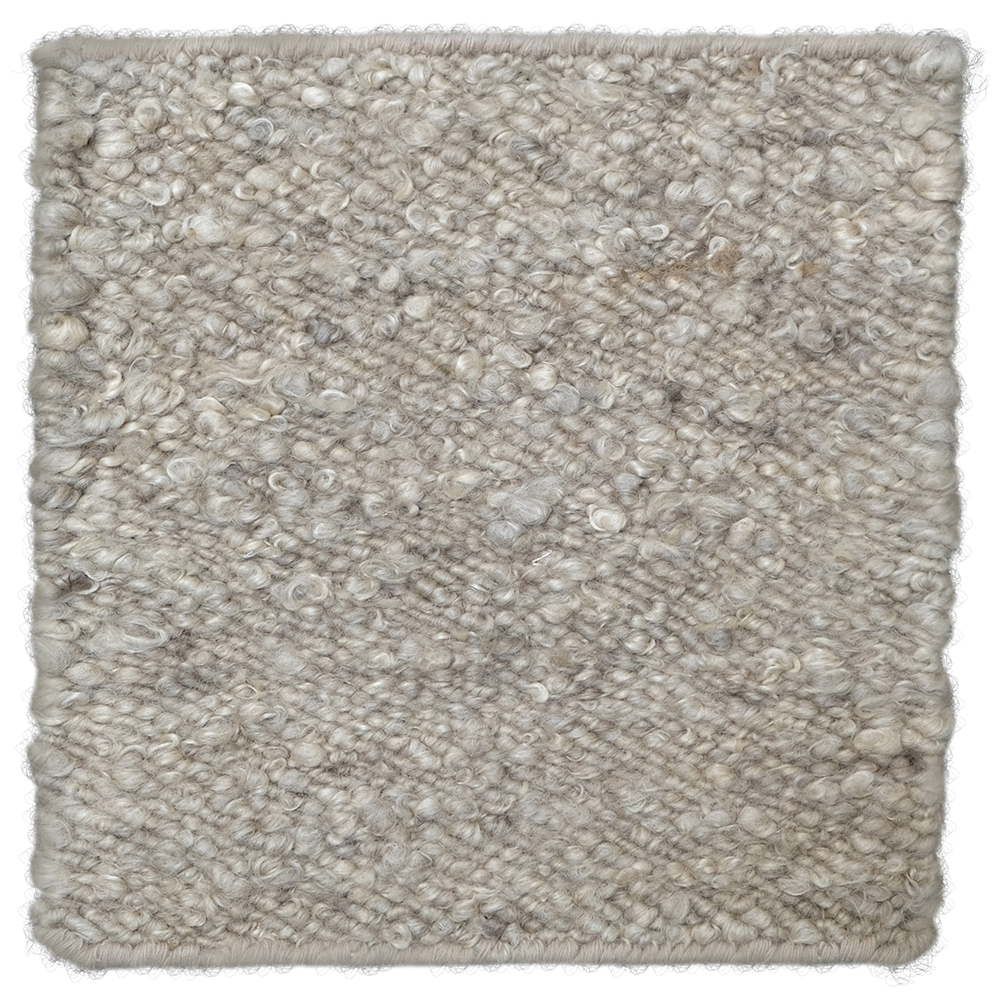 "This hand-woven wool rug showcases the textured beauty of the bouclé weave, bringing a tactile dimension and cozy warmth to any space. With its intricate loops and curls, the rug's surface offers a delightfully soft and plush feel underfoot. Crafted using high-quality wool yarn, the rug features a harmonious blend of color, interspersed with occasional flecks of deeper tones. These nuanced variations imbue the piece with a rich, organic character and ensure it complements a wide range of in