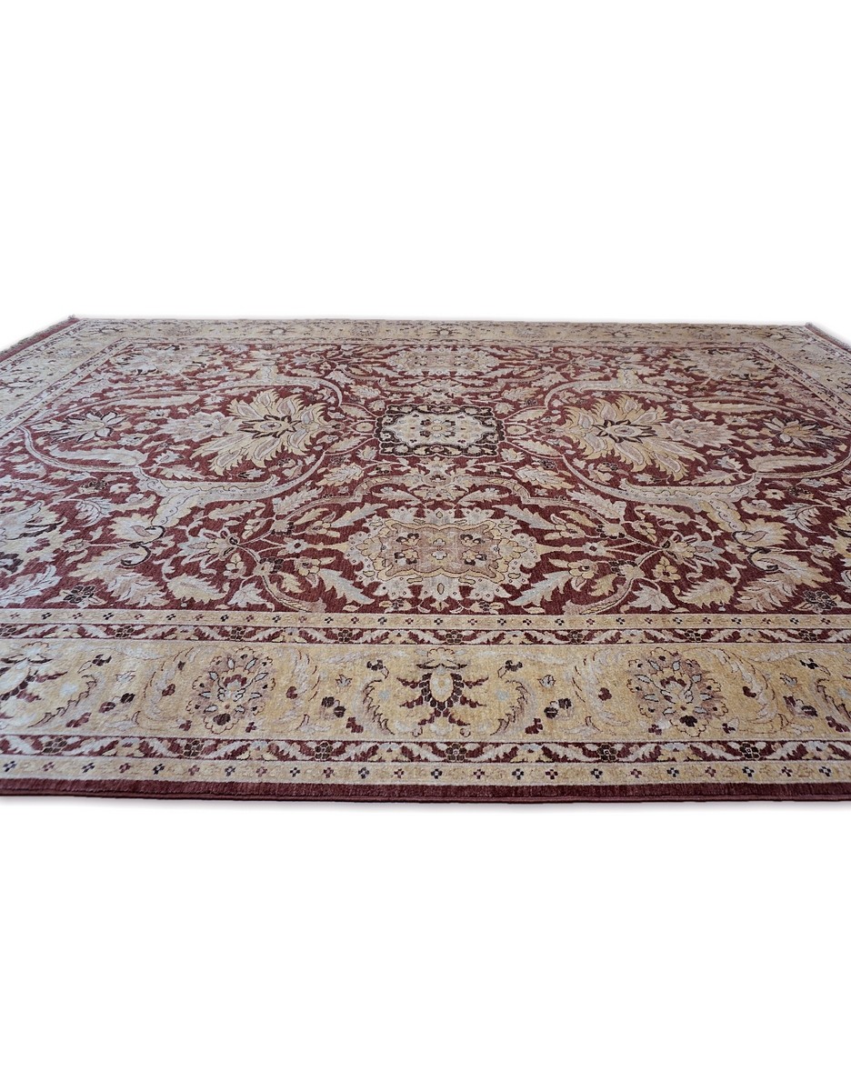 A beautiful Persian Sultanabad design using handspun high altitude wool dyed in subtle colors. Hand Knotted by master weavers of Afghanistan & painstakingly finishing process done by Pakistani Artisans makes this rug a masterpiece & takes us back to the late 19th-century era.