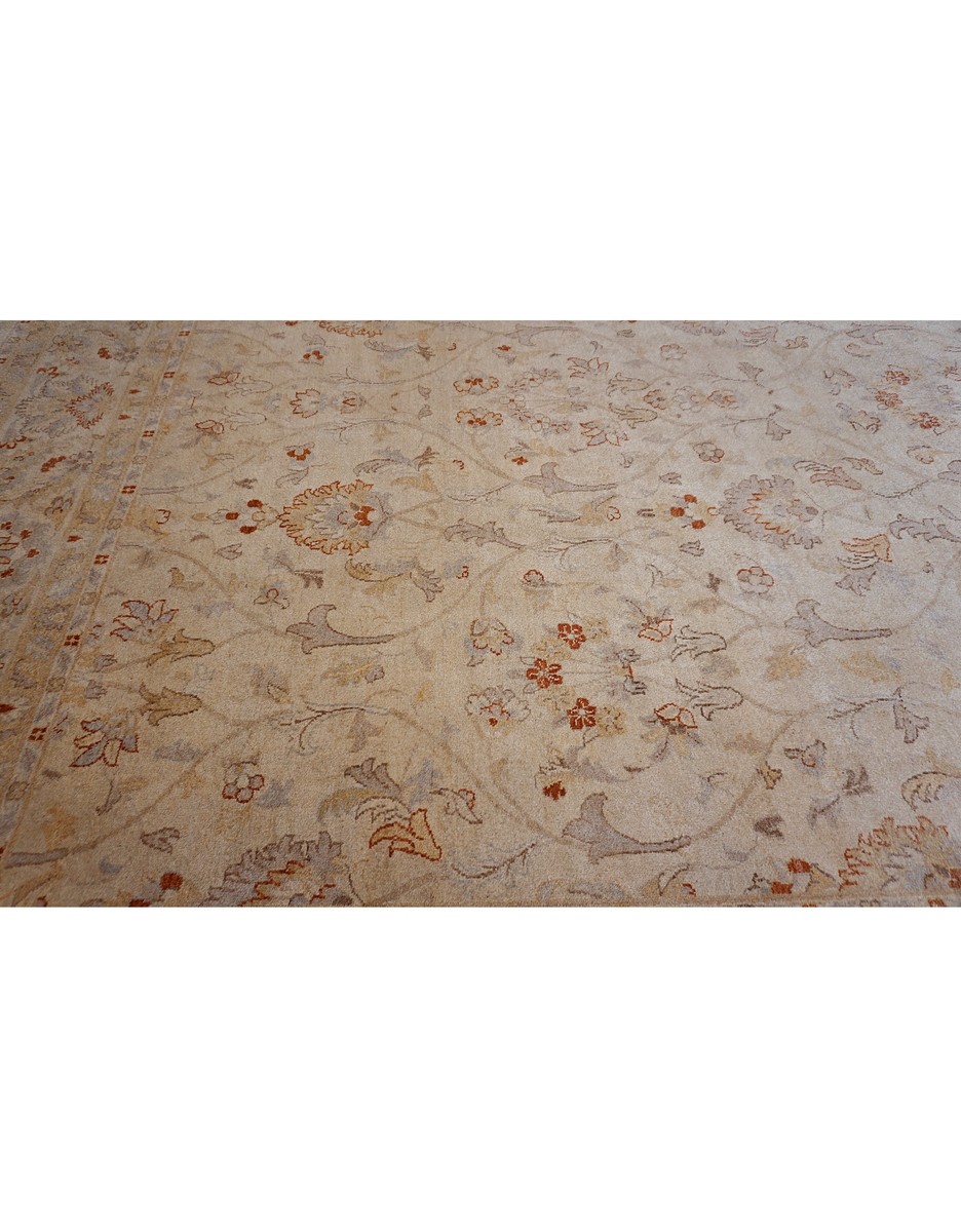 A beautiful Persian Sultanabad design using handspun high altitude wool dyed in subtle colors. Hand Knotted by master weavers of Afghanistan & painstakingly finishing process done by Pakistani Artisans makes this rug a masterpiece & takes us back to the late 19th-century era.