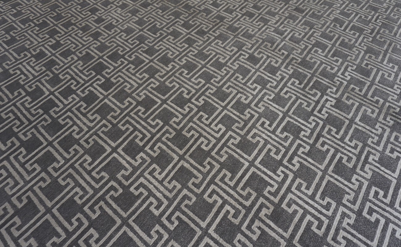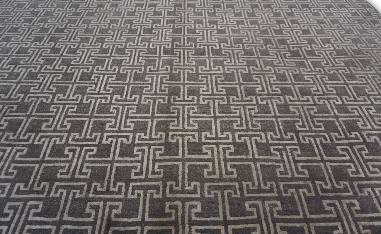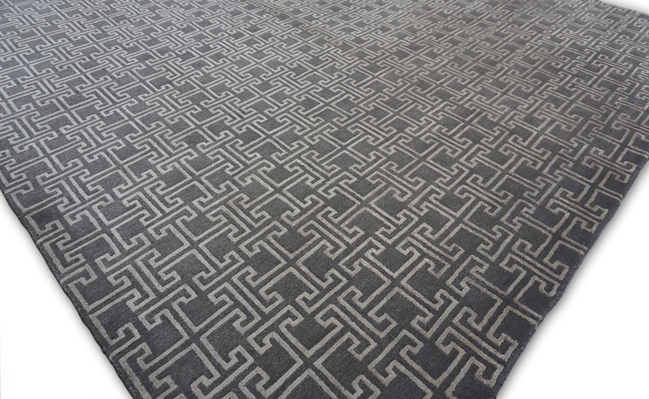 A beautiful Modern design Hand Knotted by using mostly hand spun Himalayan wool with accents of viscose to give the pile softer touch done by Master Artisans in Nepal. Hand Knotted in Nepal