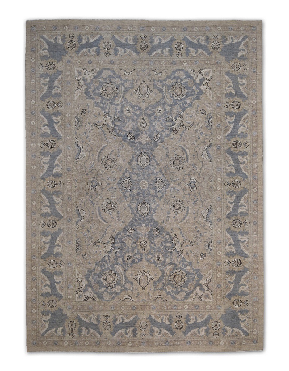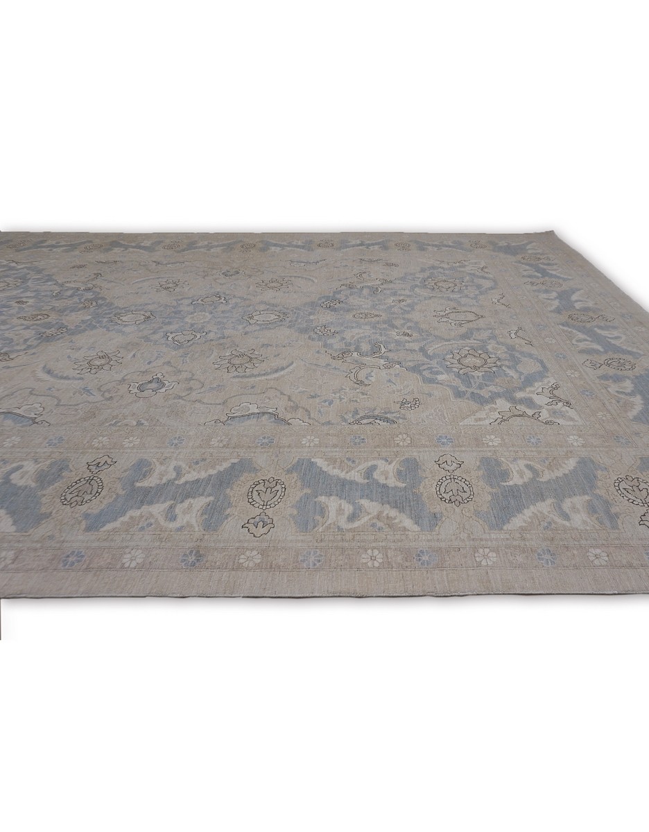 A beautiful Persian Sultanabad design using handspun high altitude wool dyed in subtle colors. Hand Knotted by master weavers of Afghanistan & painstakingly finishing process done by Pakistani Artisans makes this rug a masterpiece & takes us back to the late 19th-century era.