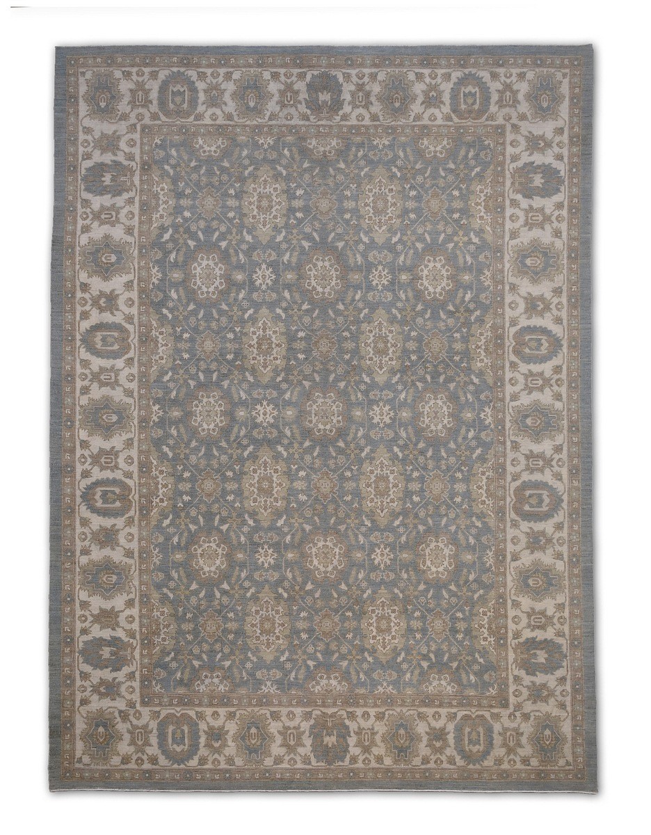 A beautiful Persian Sultanabad design using handspun high altitude wool dyed in subtle colors. Hand Knotted by master weavers of Afghanistan & painstakingly finishing process done by Pakistani Artisans makes this rug a masterpiece & takes us back to the late 19th-century era.