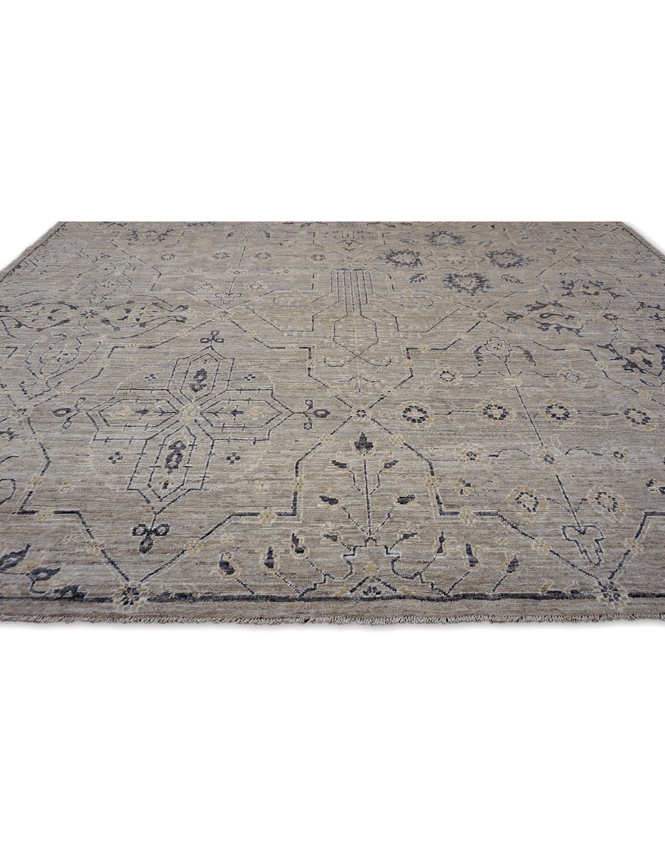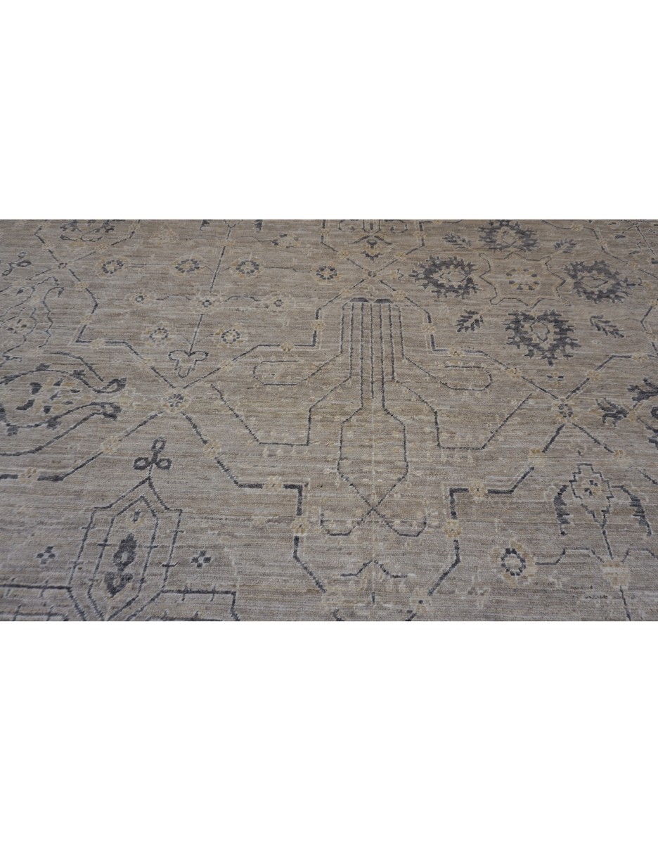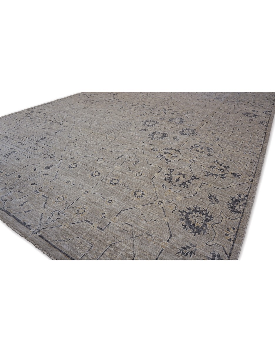A beautiful modern oushak design using handspun high altitude wool dyed in subtle colors. Hand Knotted by master weavers of Afghanistan & painstakingly finishing process done by Pakistani Artisans makes this rug a masterpiece & takes us back to the late 19th-century era.