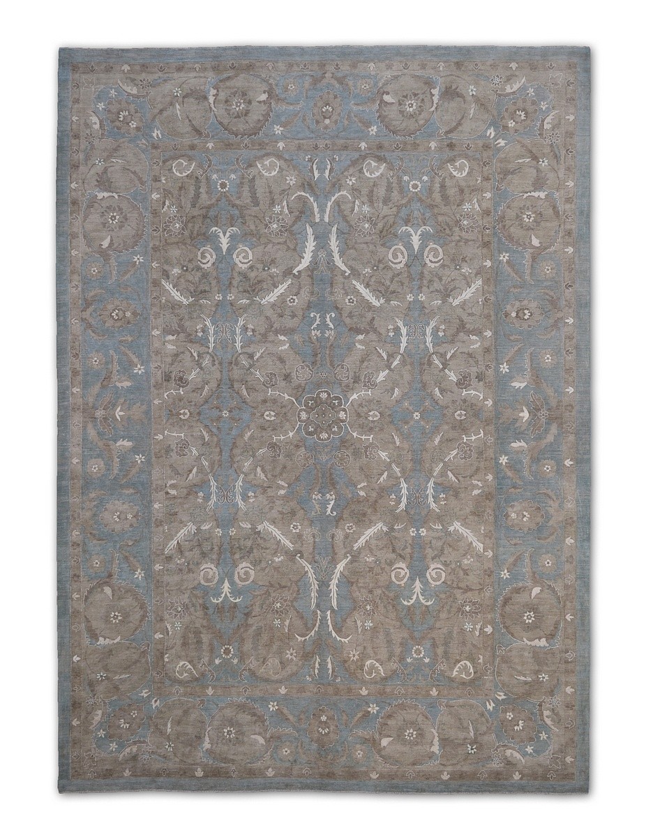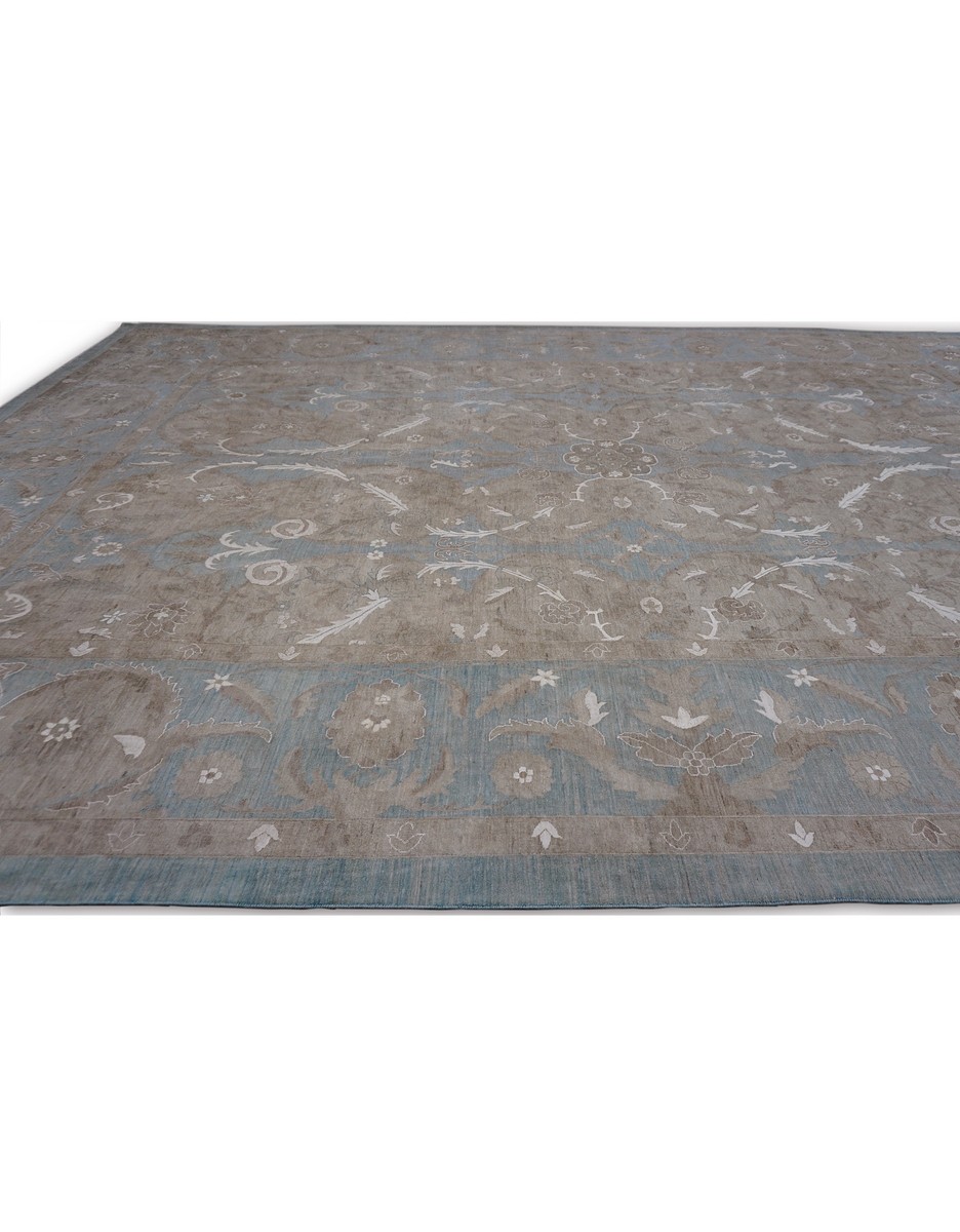 A beautiful Persian Sultanabad design using handspun high altitude wool and silk dyed in subtle colors. Hand Knotted by master weavers of Afghanistan & painstakingly finishing process done by Pakistani Artisans makes this rug a masterpiece & takes us back to the late 19th-century era.
