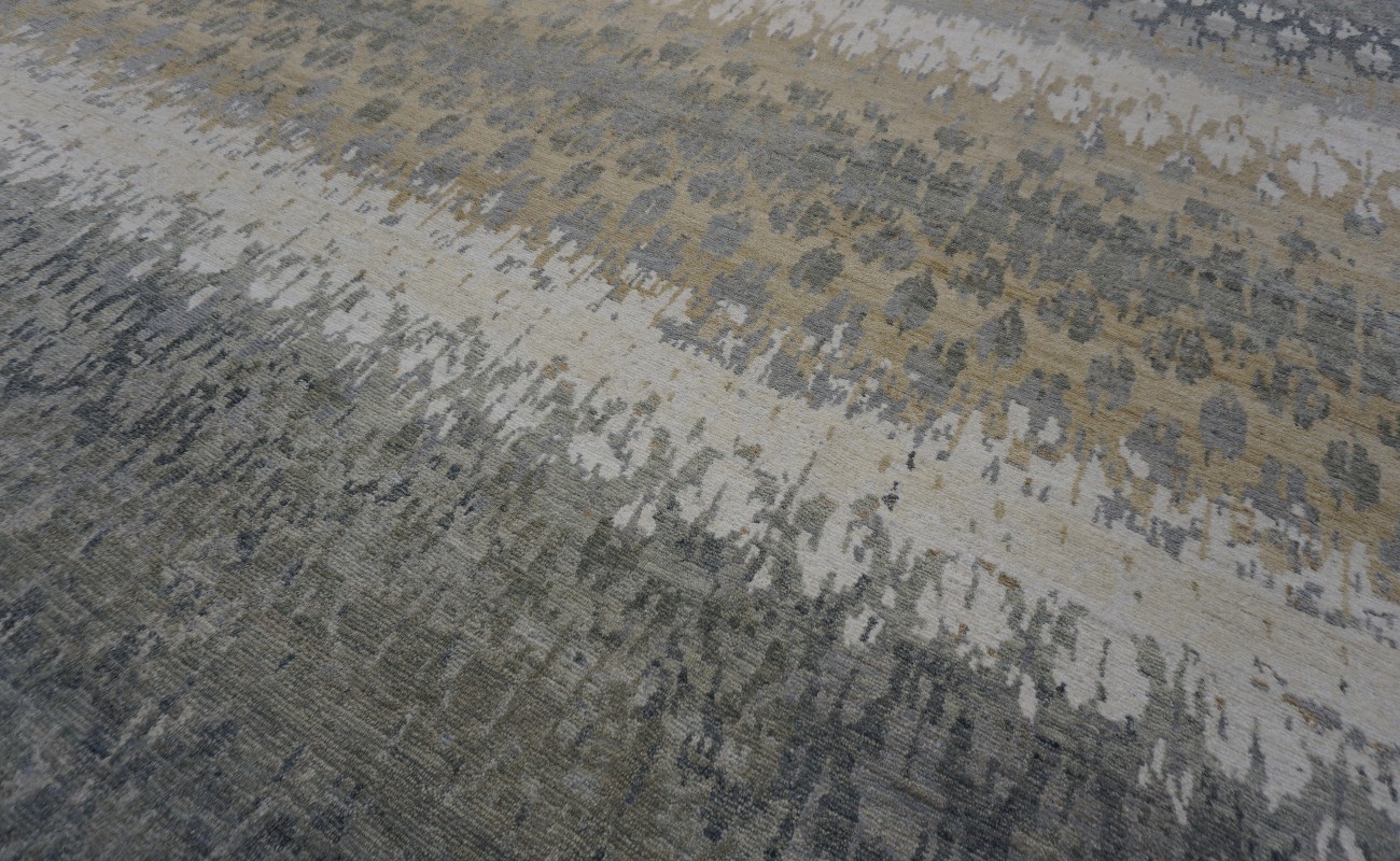 A beautiful Modern design Hand Knotted by using mostly hand spun Himalayan wool to give the pile softer touch done by Master Artisans in Nepal. Hand Knotted in Nepal