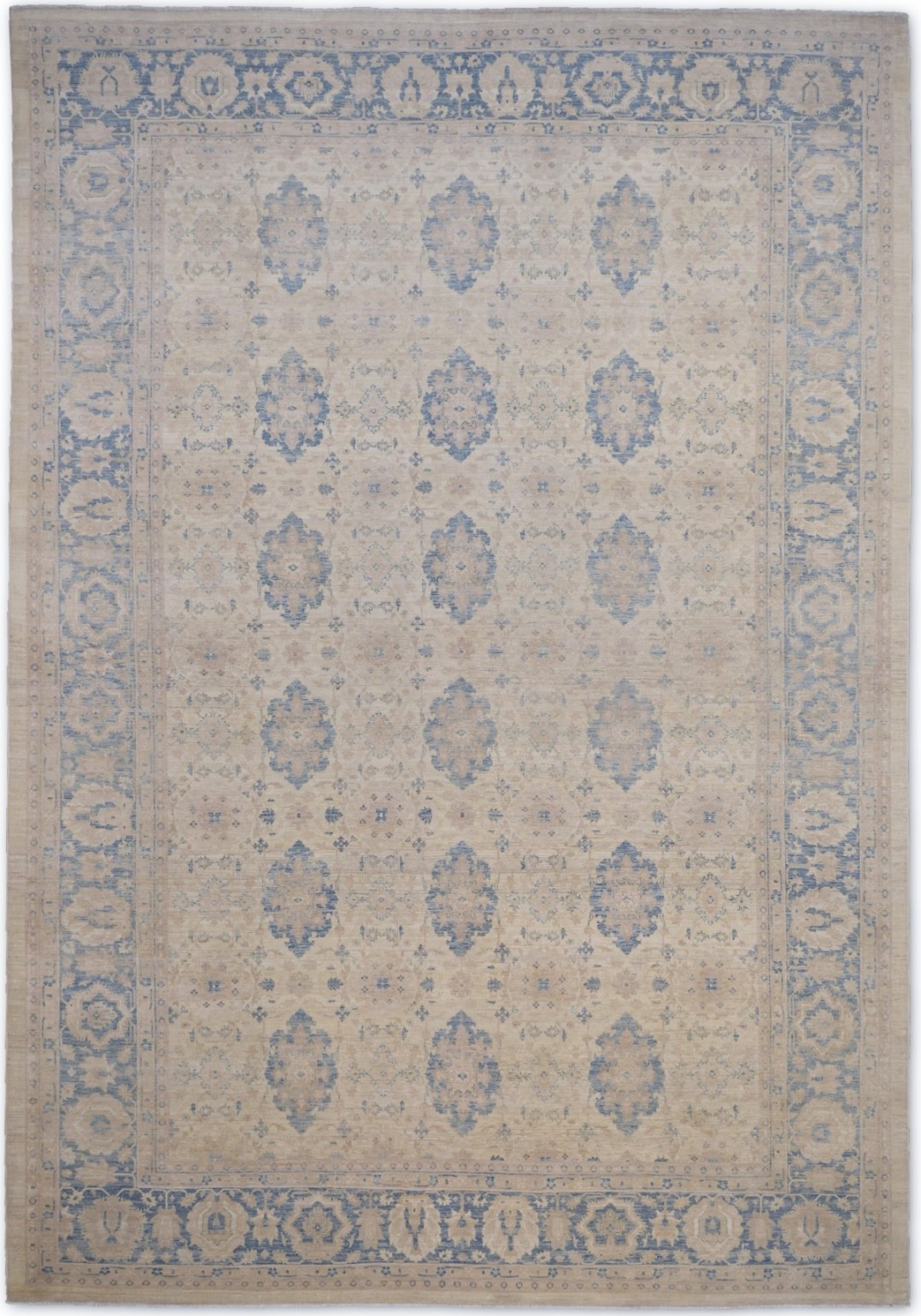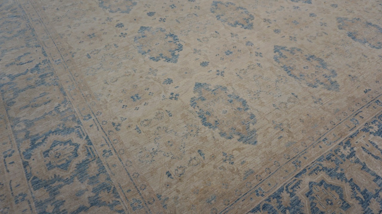 A beautiful Persian Sultanabad design using handspun high altitude wool dyed in subtle colors. Hand Knotted by master weavers of Afghanistan & painstakingly finishing process done by Pakistani Artisans makes this rug a masterpiece & takes us back to the late 19th-century era.