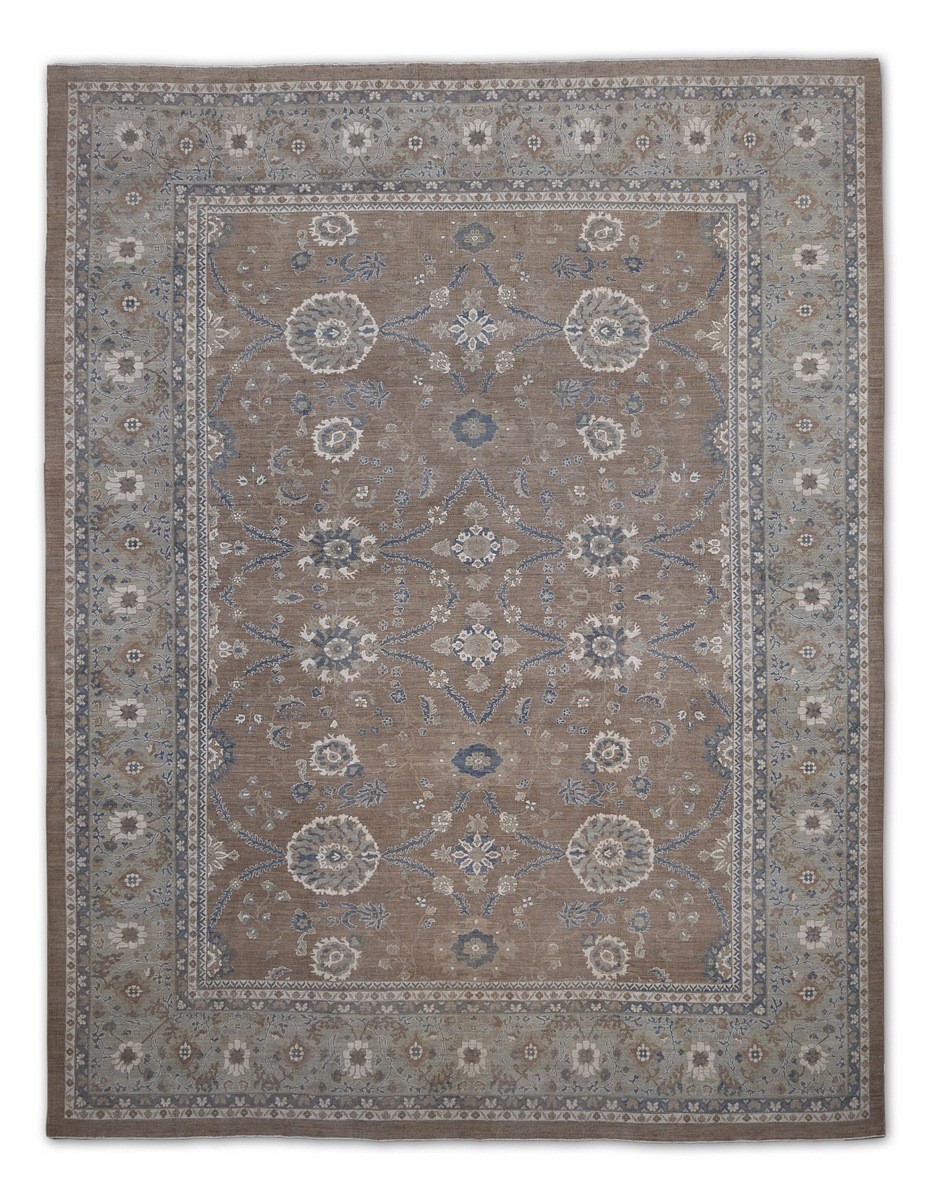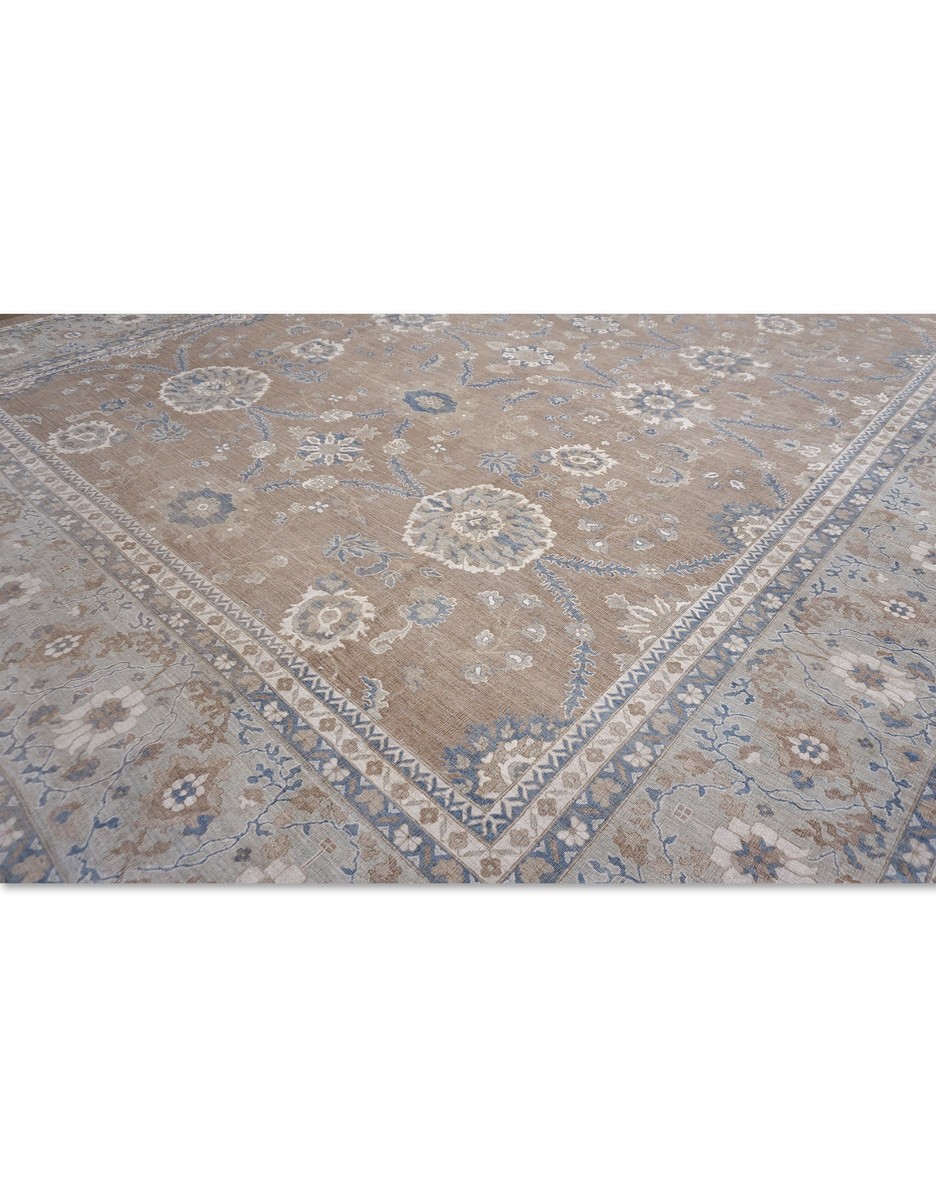 A beautiful Persian Sultanabad design using handspun high altitude wool dyed in subtle colors. Hand Knotted by master weavers of Afghanistan & painstakingly finishing process done by Pakistani Artisans makes this rug a masterpiece & takes us back to the late 19th-century era.