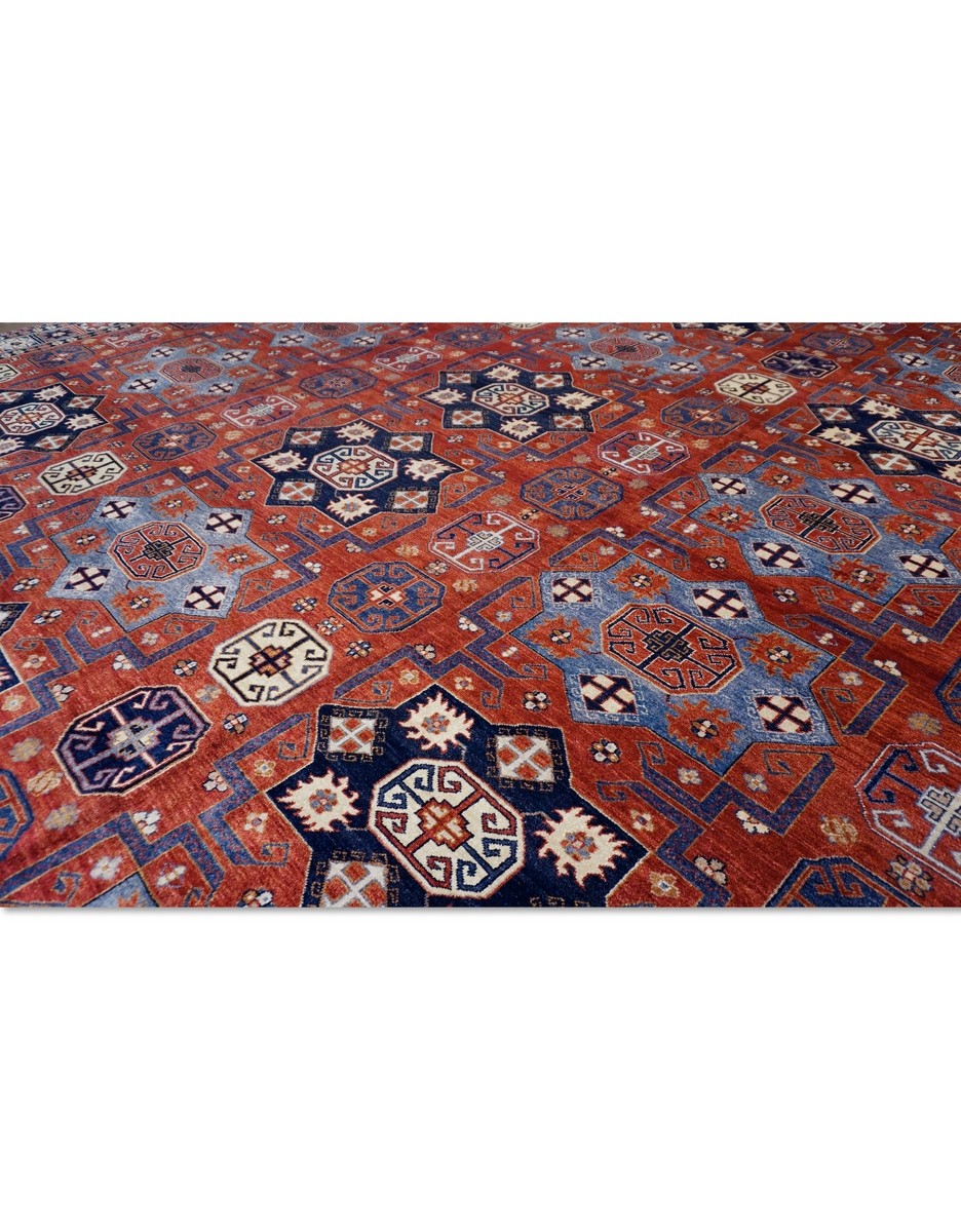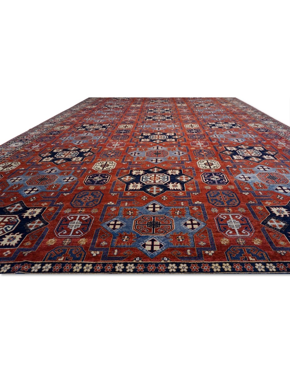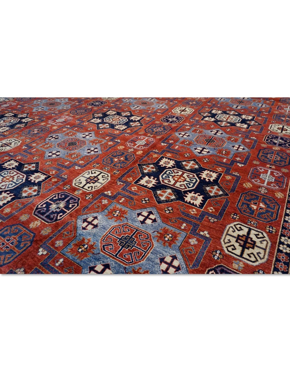 A beautiful Khotan design using handspun high altitude wool dyed in subtle colors & hand knotted by master weavers of Afghanistan & painstakingly finishing process done by Pakistani Artisans makes this rug a masterpiece & takes us back to late 19th-century era.
