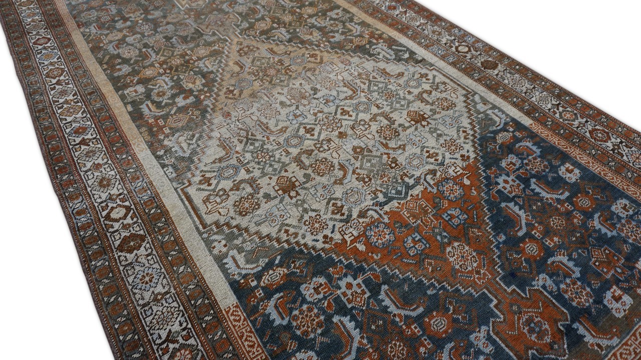 An exquisite antique Persian Malayer Rug. Weathered and distressed extremely decorative and highly sort after master piece