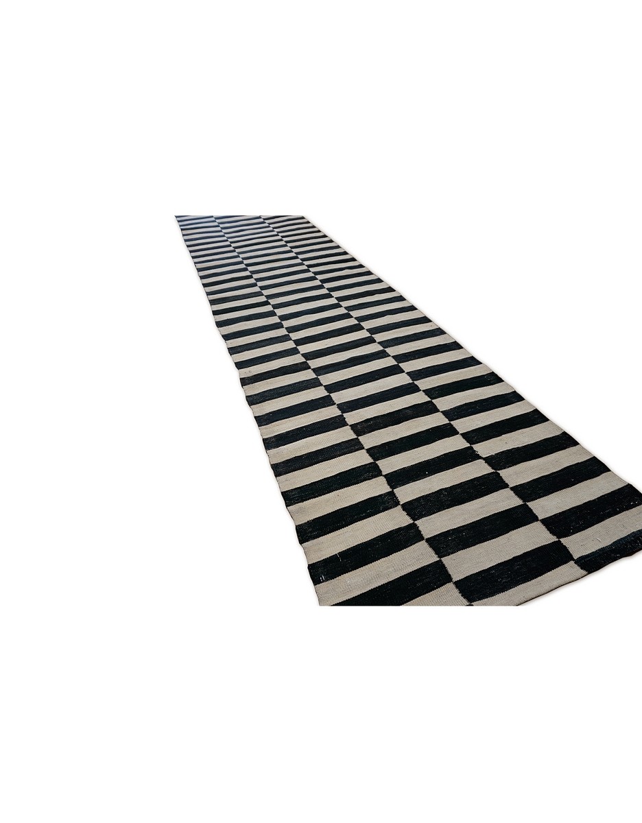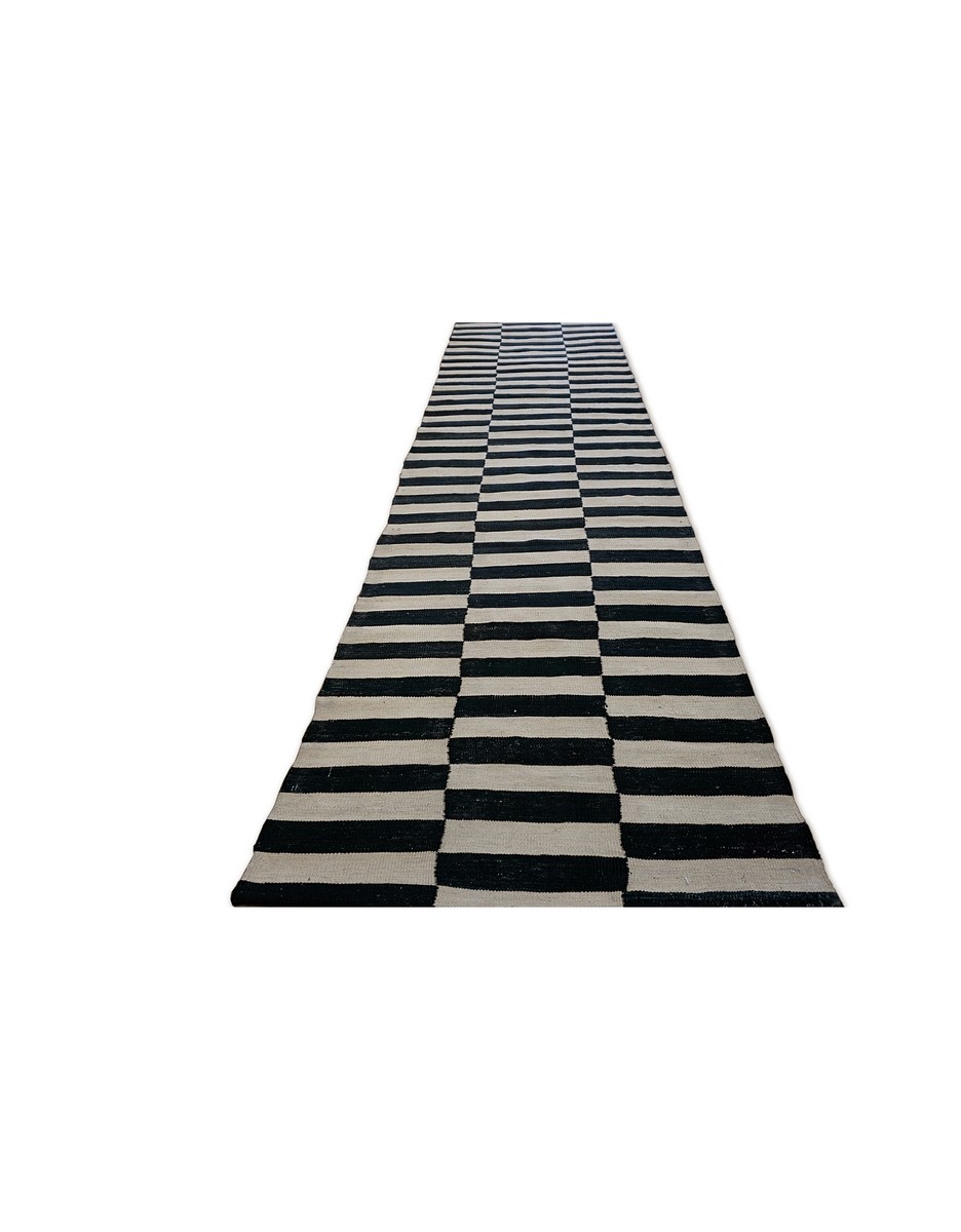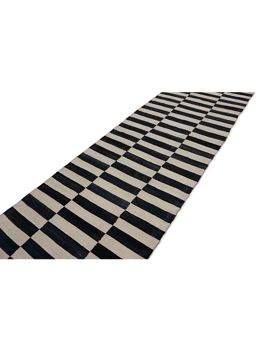 A beautiful Modern kilim runner handwoven by Master Artisans using fine handspun wool. Kilims are flat woven rugs in a technique that comes from Anatolia, parts of Iran, the Caucasus, and Turkey. This Turkish style modern kilim rug is handwoven.