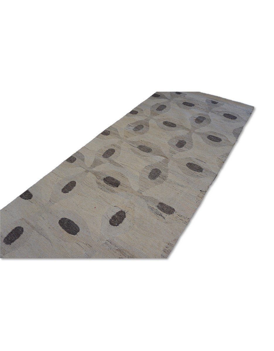 A beautiful Modern kilim runner handwoven by Master Artisans using fine handspun wool. Kilims are flat woven rugs in a technique that comes from Anatolia, parts of Iran, the Caucasus, and Turkey. This Turkish style modern kilim rug is handwoven.