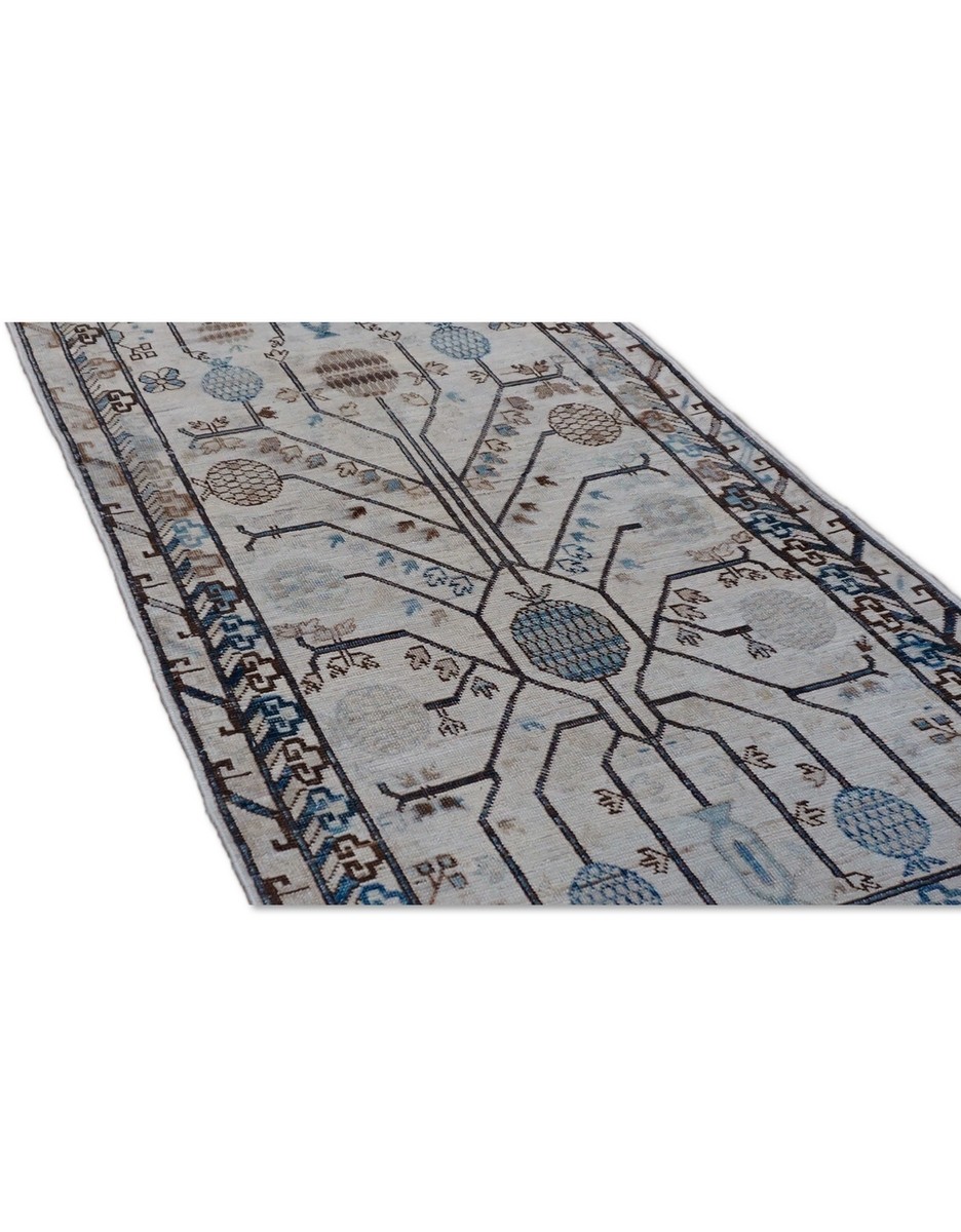 A beautiful Persian Sultanabad mix with Khoton design using handspun high altitude wool dyed in subtle colors. Hand Knotted by master weavers of Afghanistan & painstakingly finishing process done by Pakistani Artisans makes this rug a masterpiece & takes us back to the late 19th-century era.