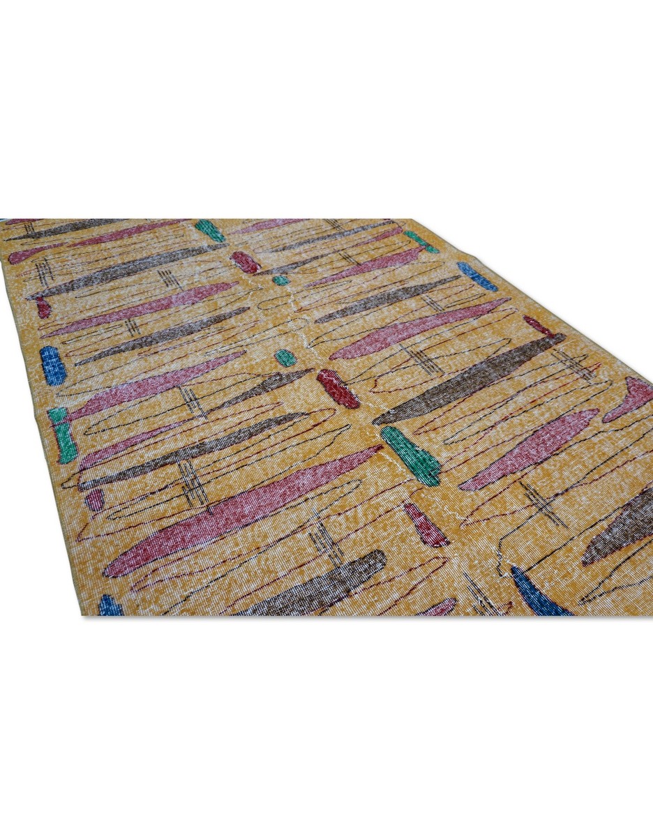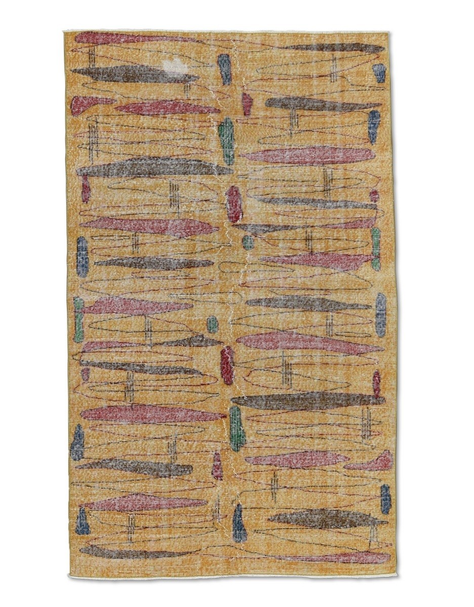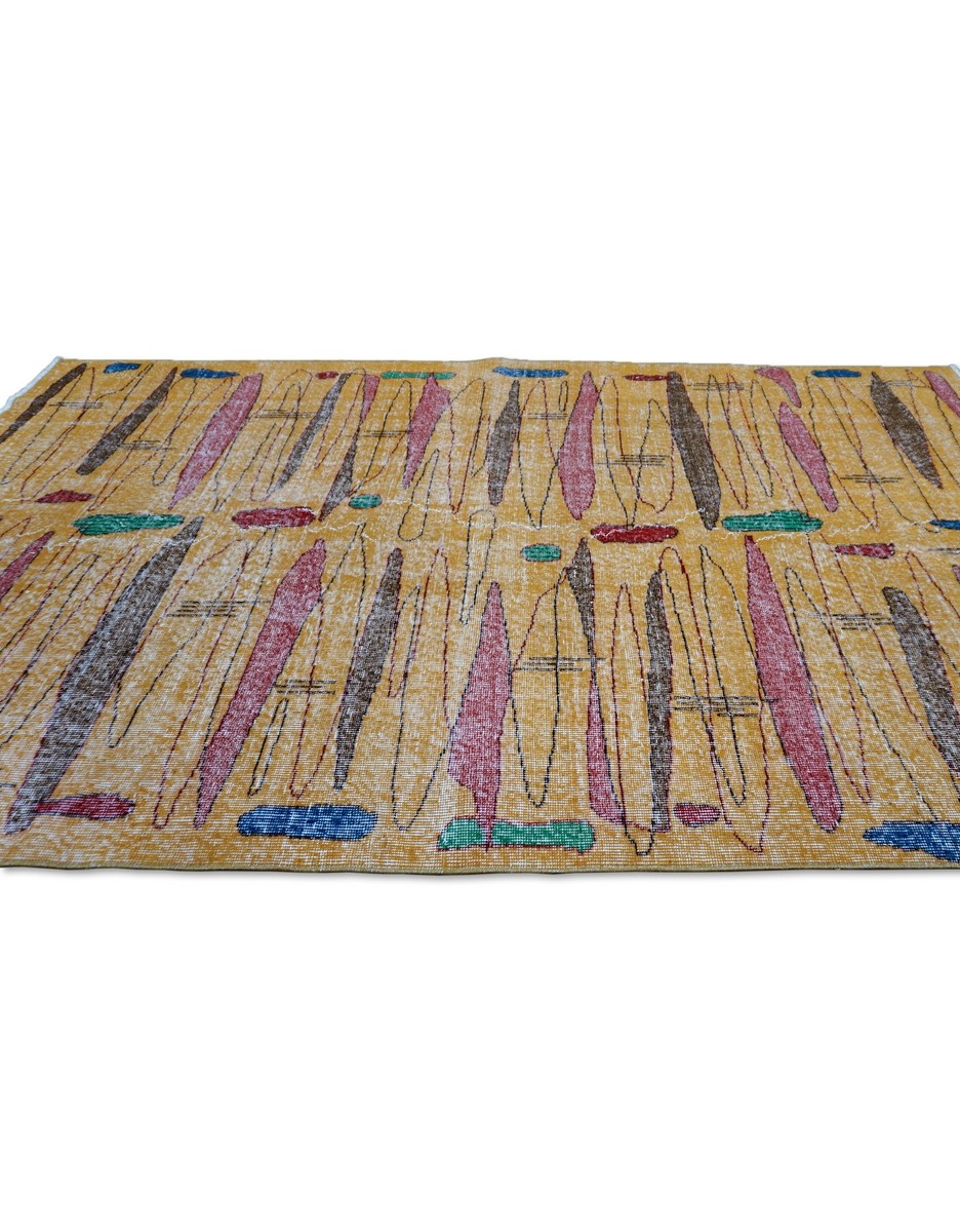 Zeki Muren distressed vintage Turkish rug in Art Deco style. Hand Knotted in Wool