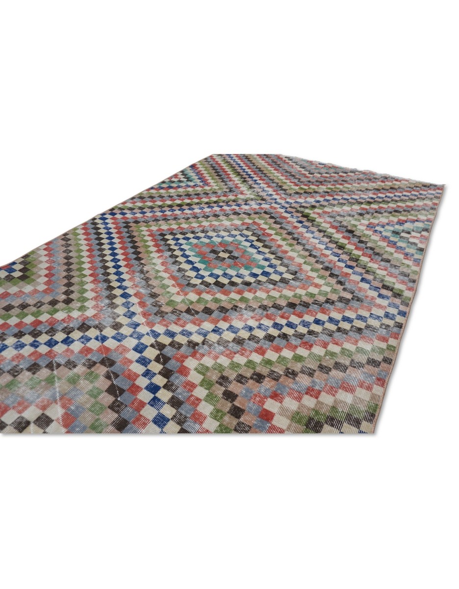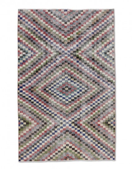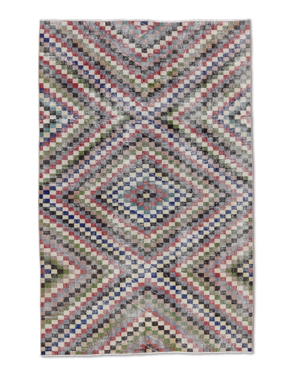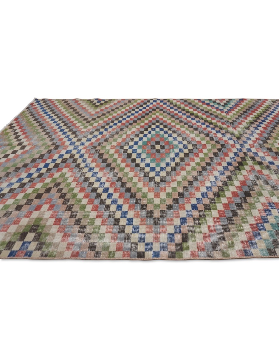 Zeki Muren distressed vintage Turkish rug in Art Deco style. Hand Knotted in Wool