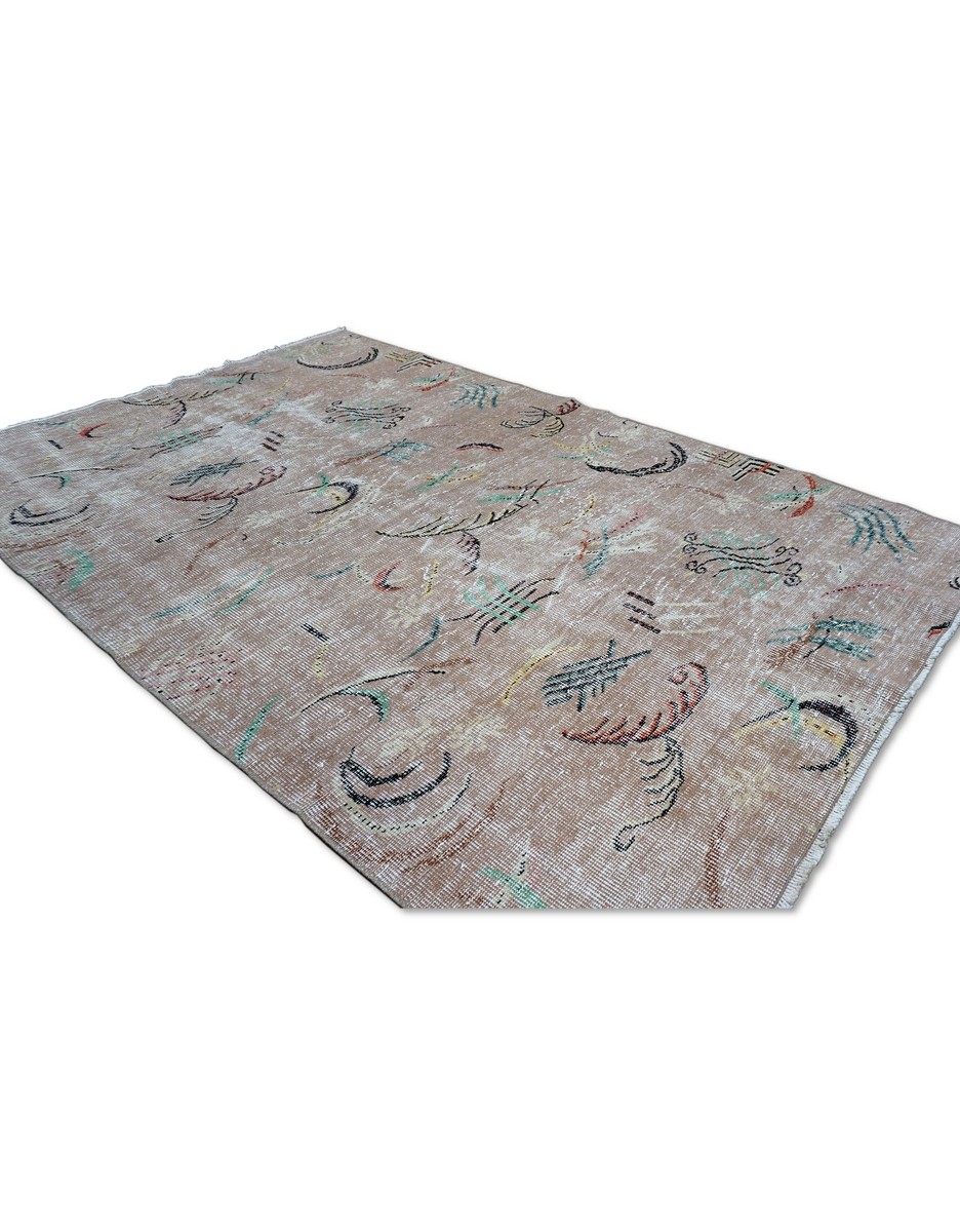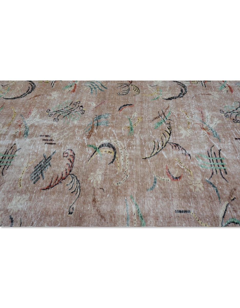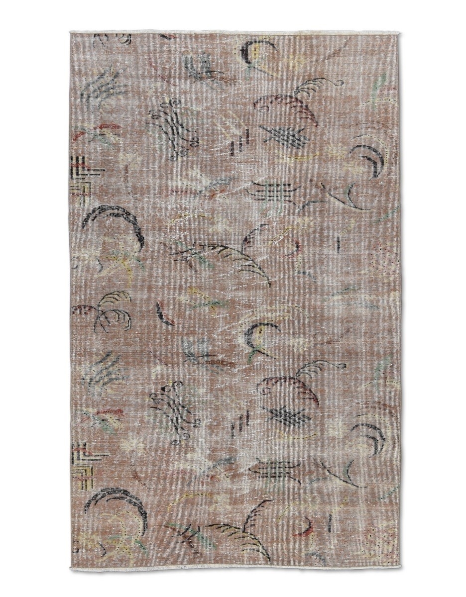 Zeki Muren distressed vintage Turkish rug in Art Deco style. Hand Knotted in Wool