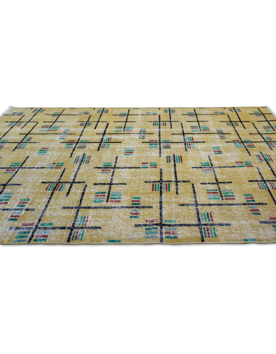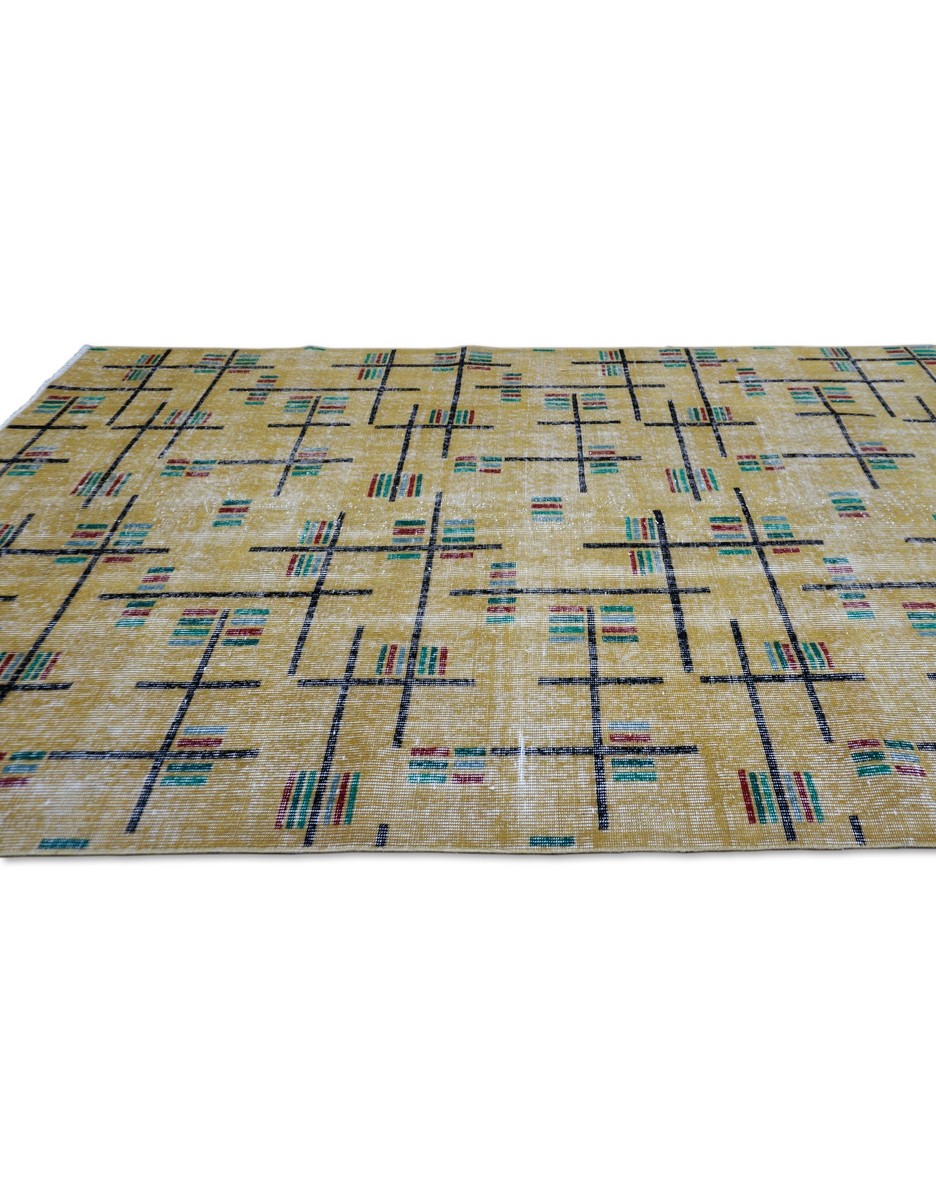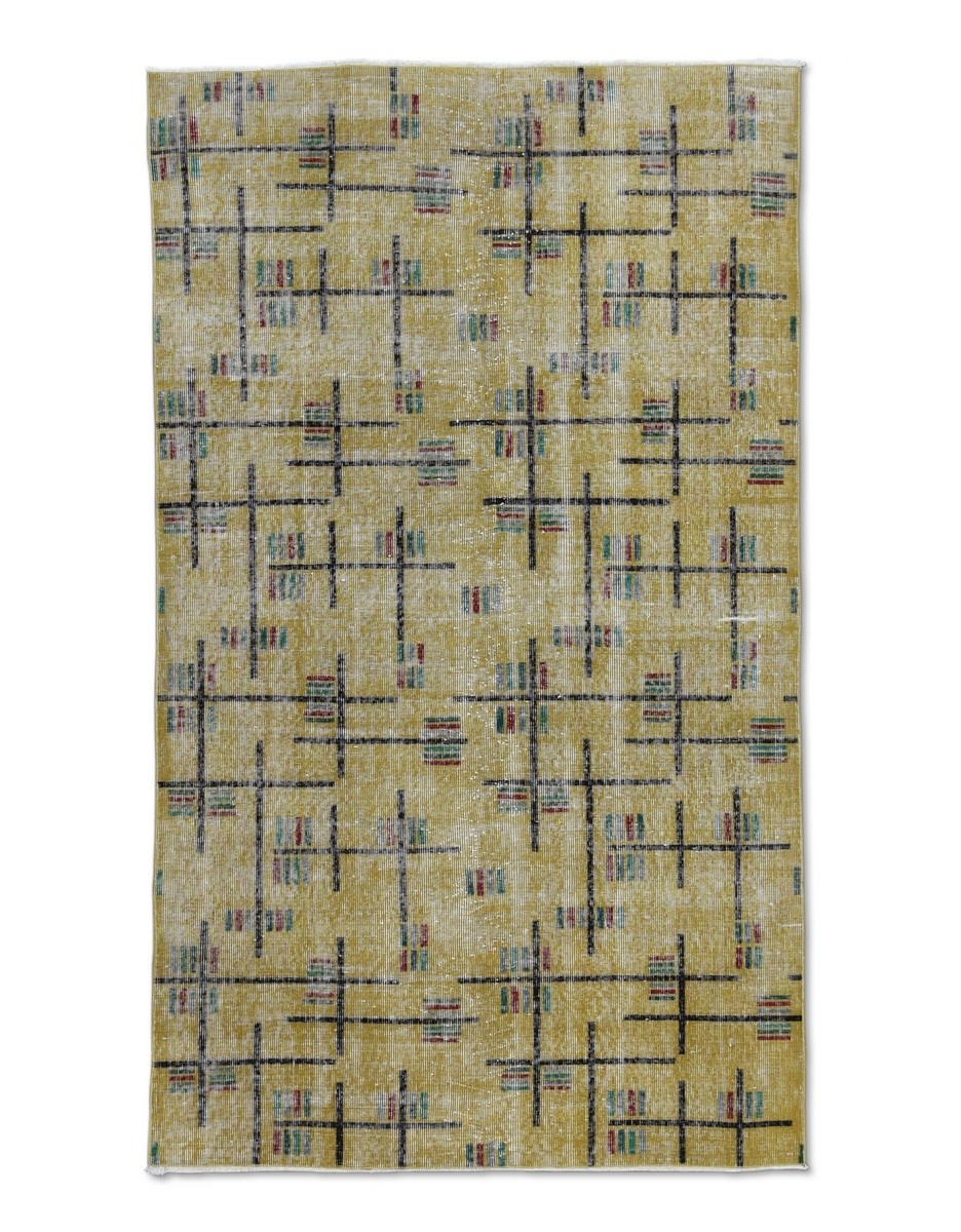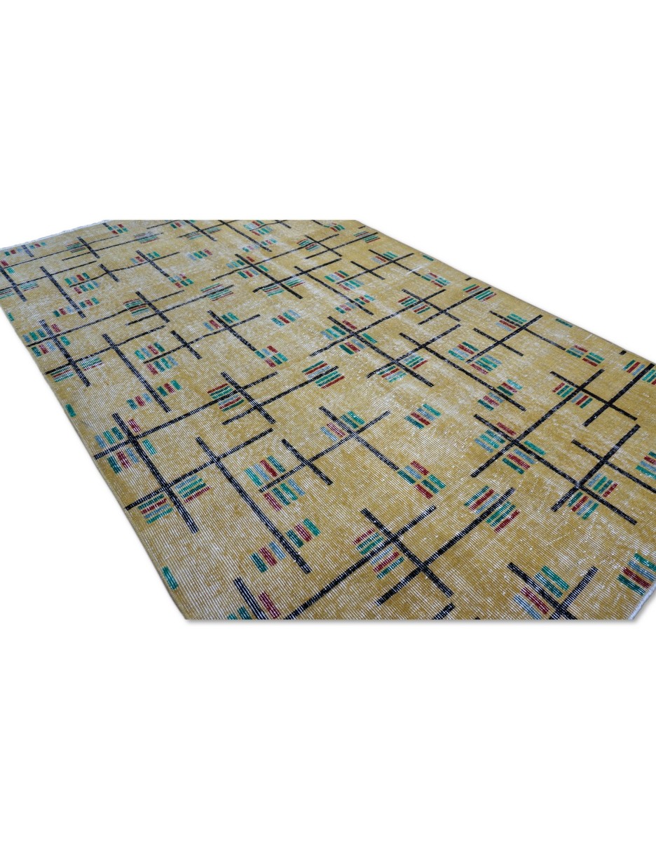 Zeki Muren distressed vintage Turkish rug in Art Deco style. Hand Knotted in Wool