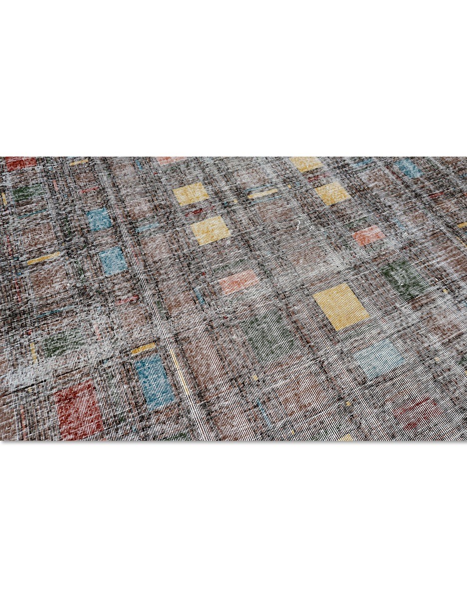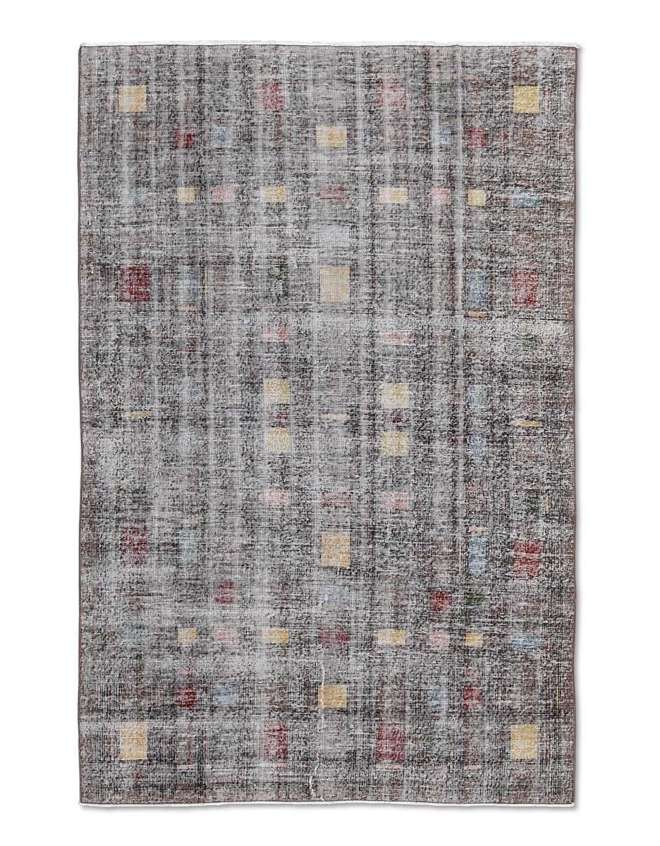 Zeki Muren distressed vintage Turkish rug in Art Deco style. Hand Knotted in Wool