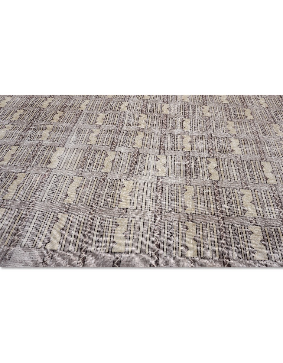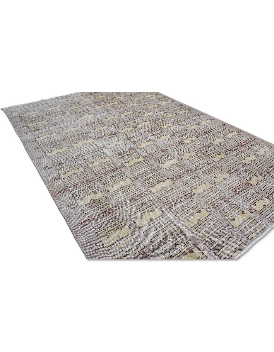 Zeki Muren distressed vintage Turkish rug in Art Deco style. Hand Knotted in Wool