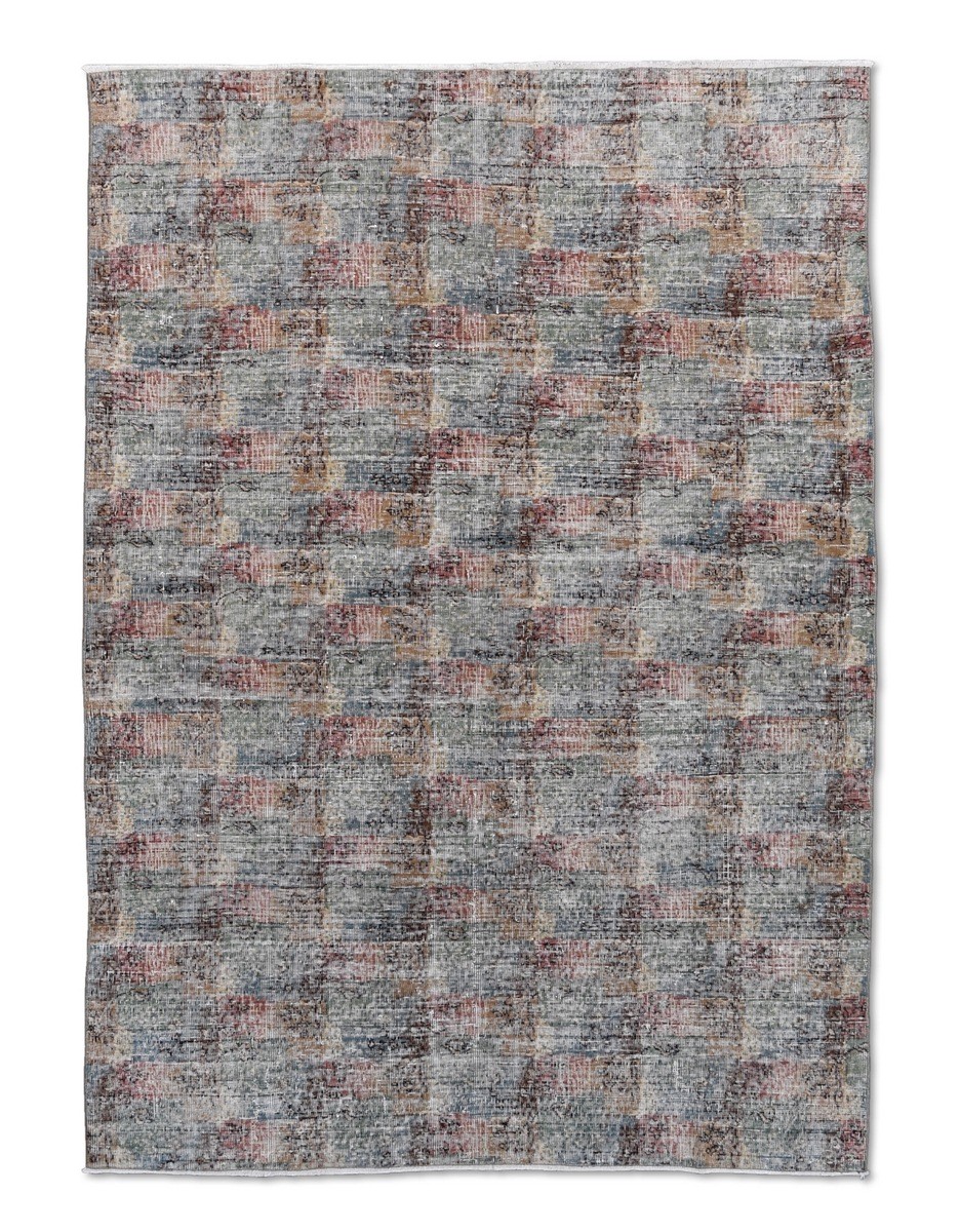 Zeki Muren distressed vintage Turkish rug in Art Deco style. Hand Knotted in Wool