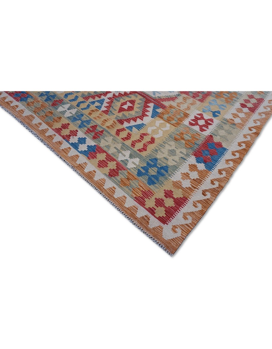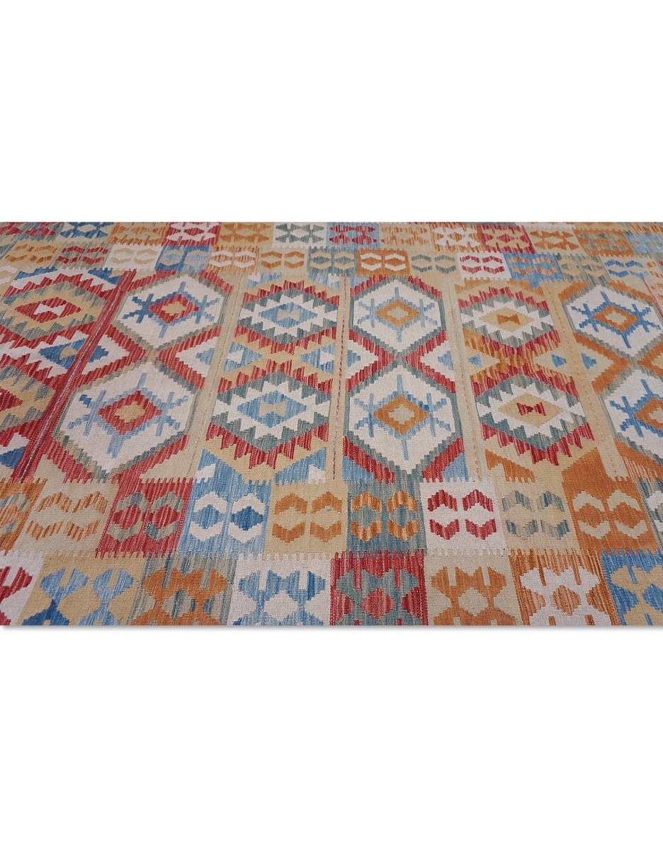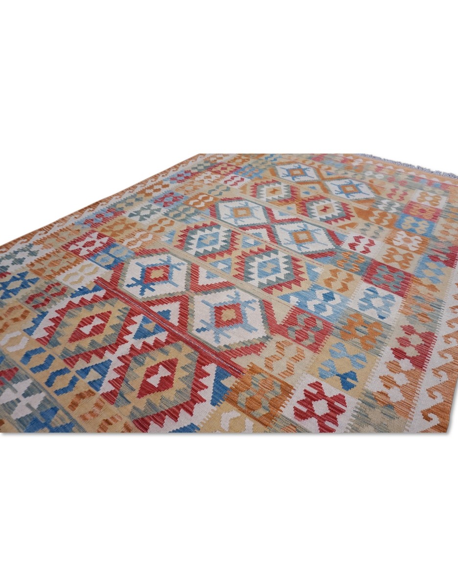 A beautiful Modern kilim handwoven by Master Artisans using fine handspun wool. Kilims are flat woven rugs in a technique that comes from Anatolia, parts of Iran, the Caucasus, and Turkey. This Turkish style modern kilim rug is handwoven.
