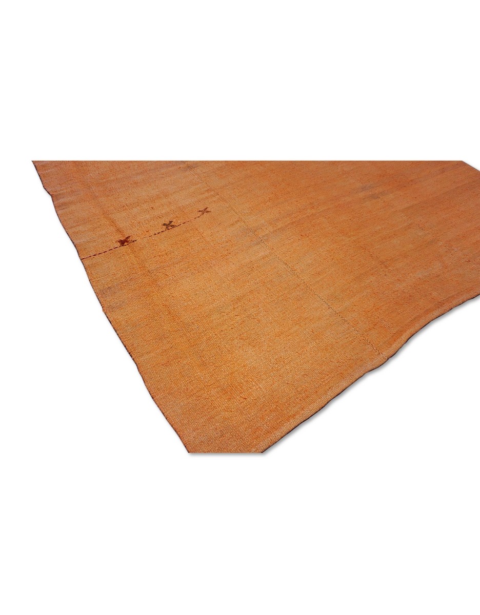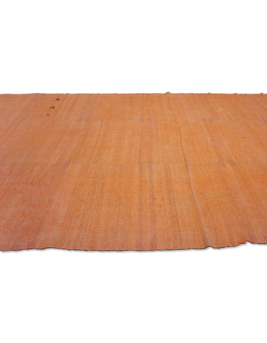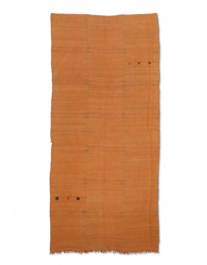 A beautiful vintage kilim is handwoven by Master Artisans using handspun goat hair in Turkey. Kilims are flat woven rugs in a technique that comes from Anatolia, parts of Iran, the Caucasus, and Turkestan. This Mazandaran style minimalist kilim offers simple designs in natural colors.