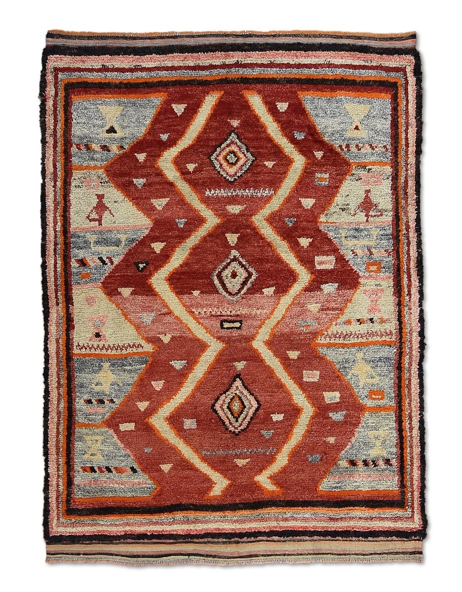 A beautiful Modern tribal design Hand Knotted by using hand spun finest wool to give the pile softer touch done by Master Artisans.