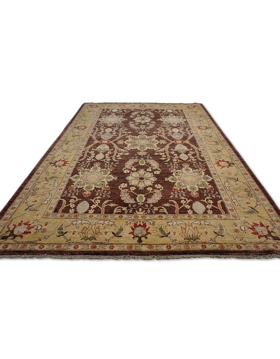 A beautiful Persian Sultanabad design using handspun high altitude wool dyed in subtle colors. Hand Knotted by master weavers of Afghanistan & painstakingly finishing process done by Pakistani Artisans makes this rug a masterpiece & takes us back to the late 19th-century era.