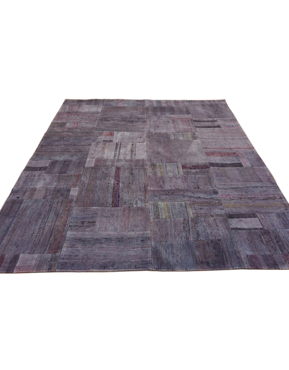 Patchwork Overdyed Rug uses vintage rug pieces, Hand Knotted