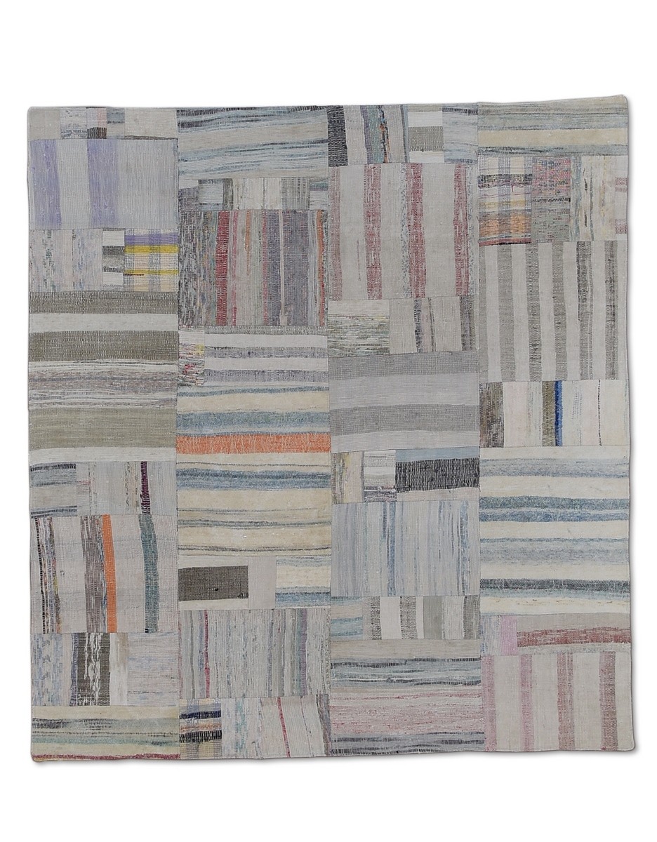 Patchwork Overdyed Rug uses vintage rug pieces, Hand Knotted