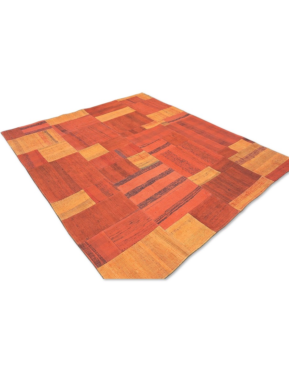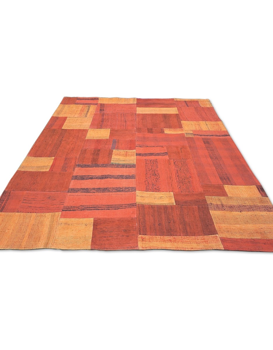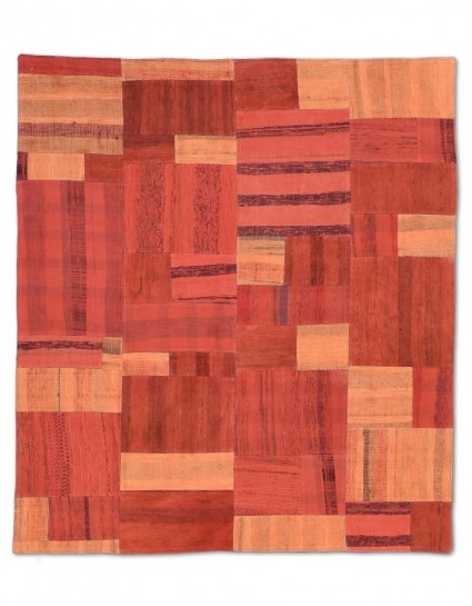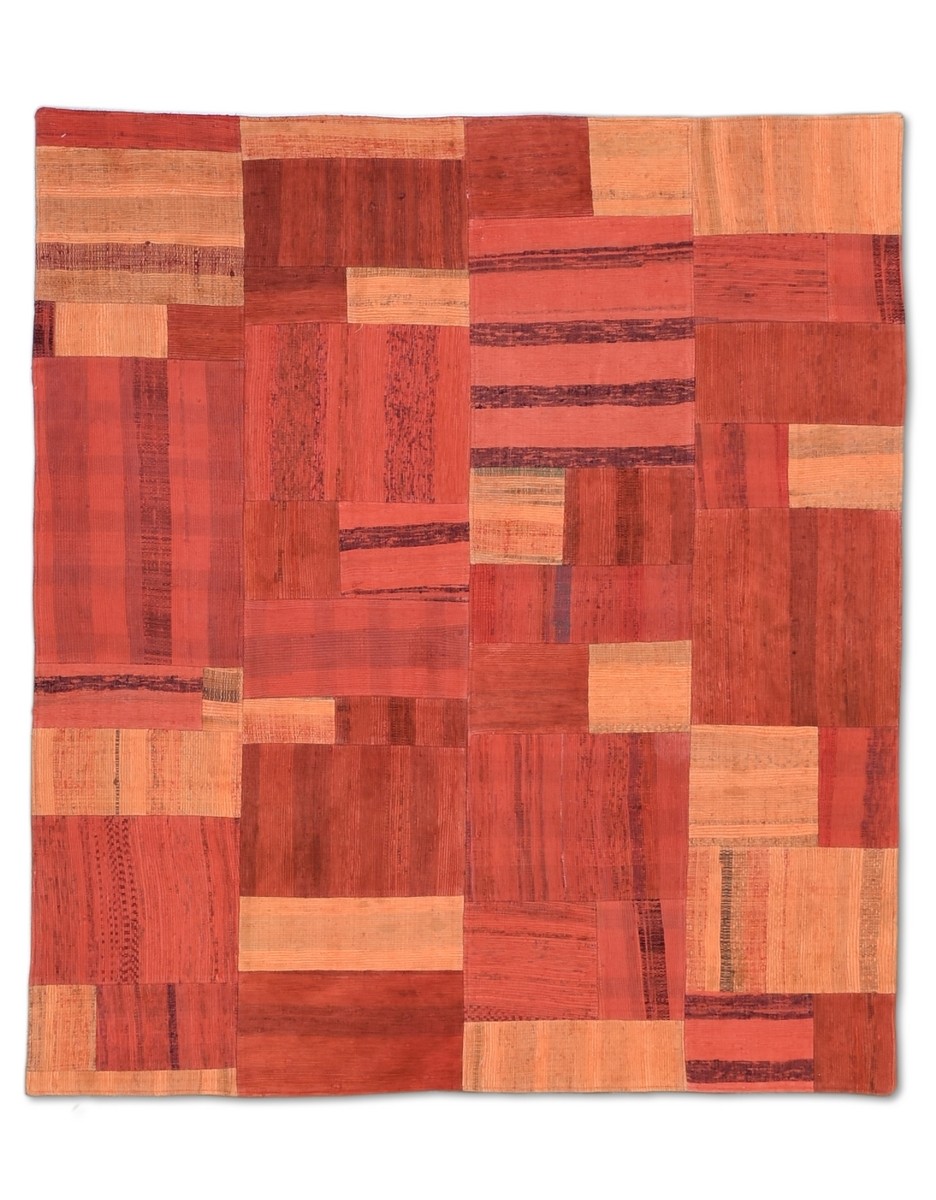 Patchwork Overdyed Rug uses vintage rug pieces, Hand Knotted