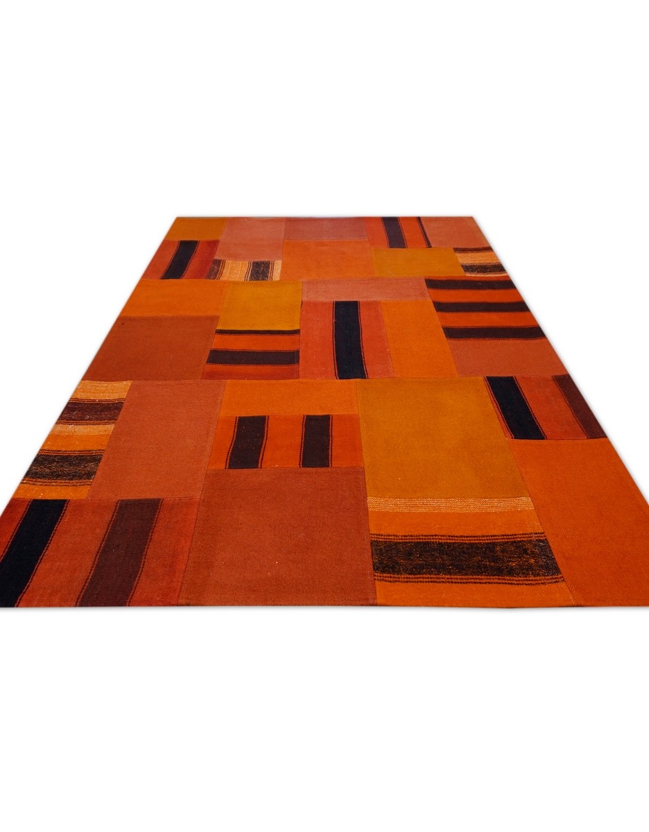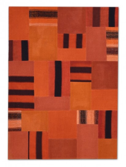 Patchwork Overdyed Rug uses vintage rug pieces, Hand Knotted