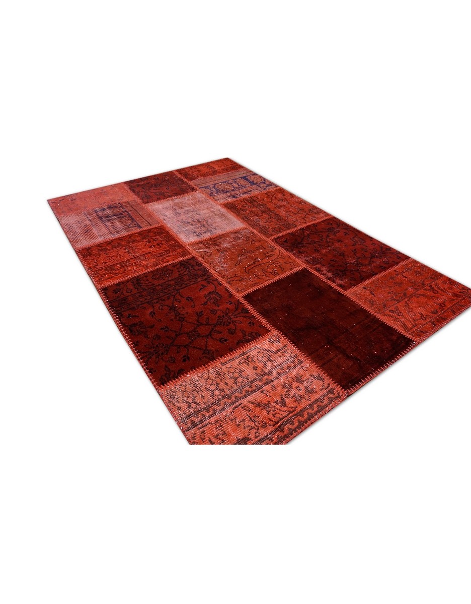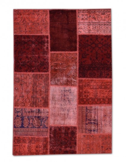 Patchwork Overdyed Rug uses vintage rug pieces, Hand Knotted