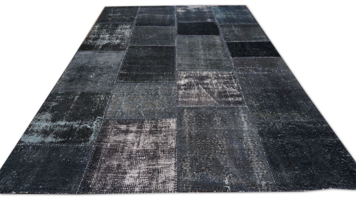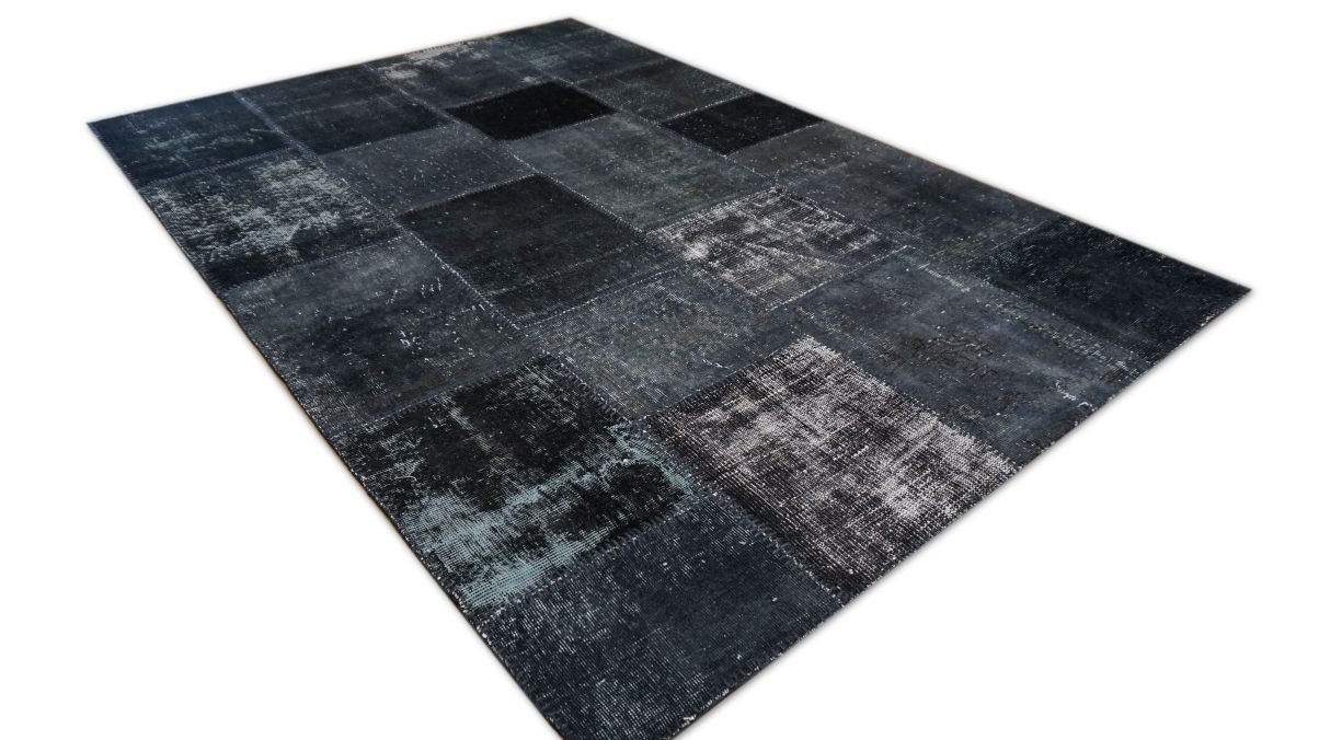 Patchwork Overdyed Rug uses vintage rug pieces, Hand Knotted