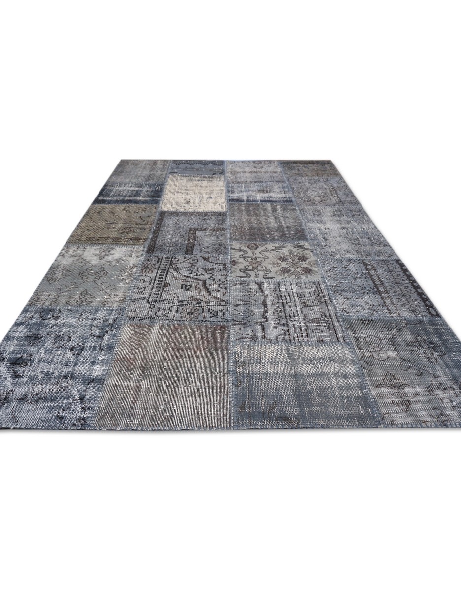 Patchwork Overdyed Rug uses vintage rug pieces, Hand Knotted