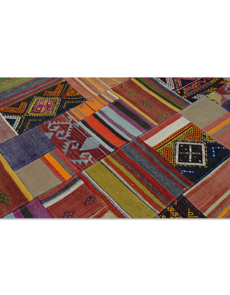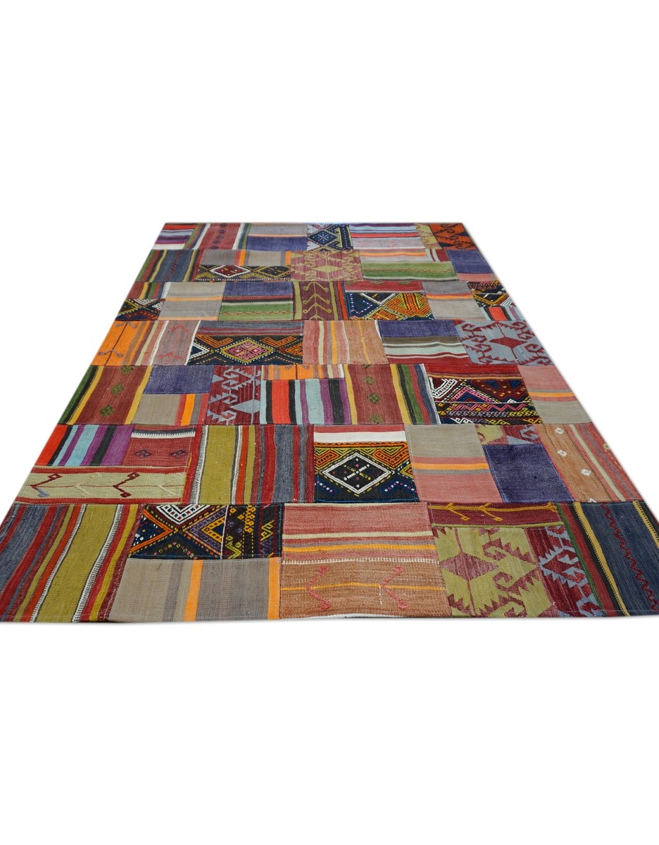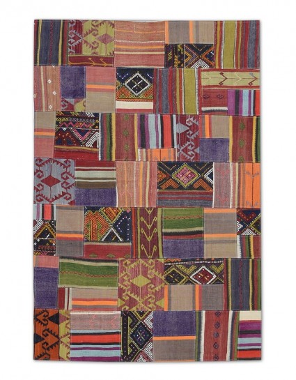 Patchwork Overdyed Rug uses vintage rug pieces, Hand Knotted