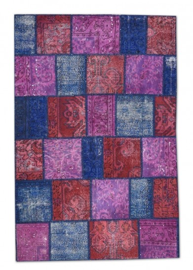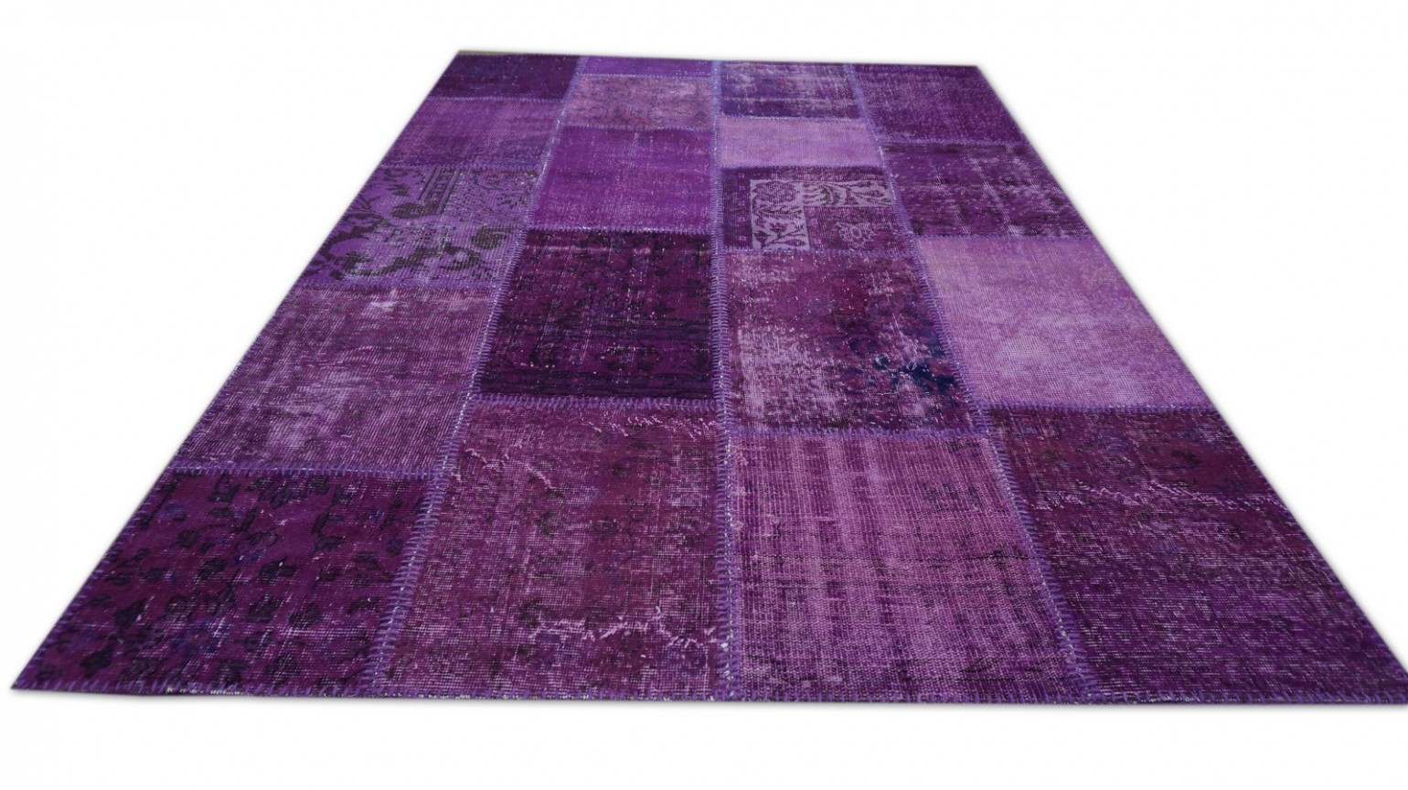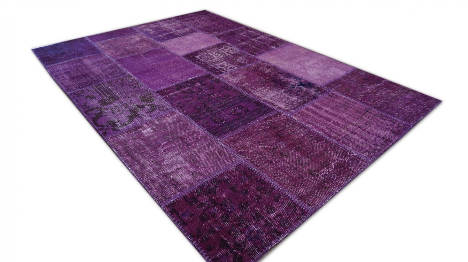 Patchwork Overdyed Rug uses vintage rug pieces, Hand Knotted