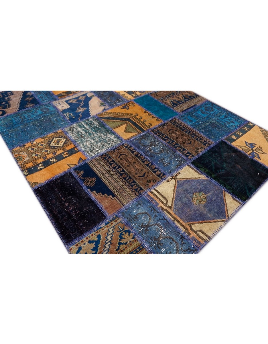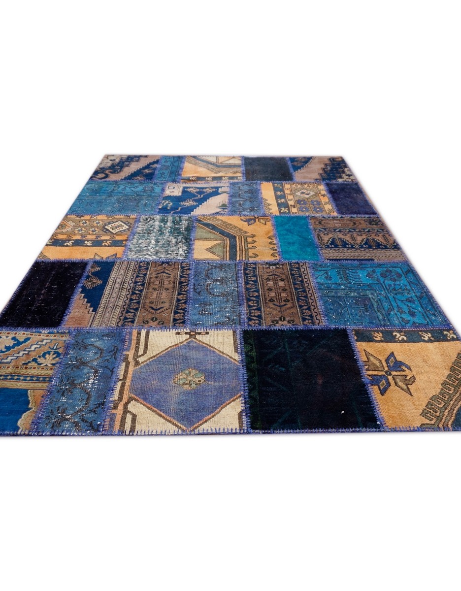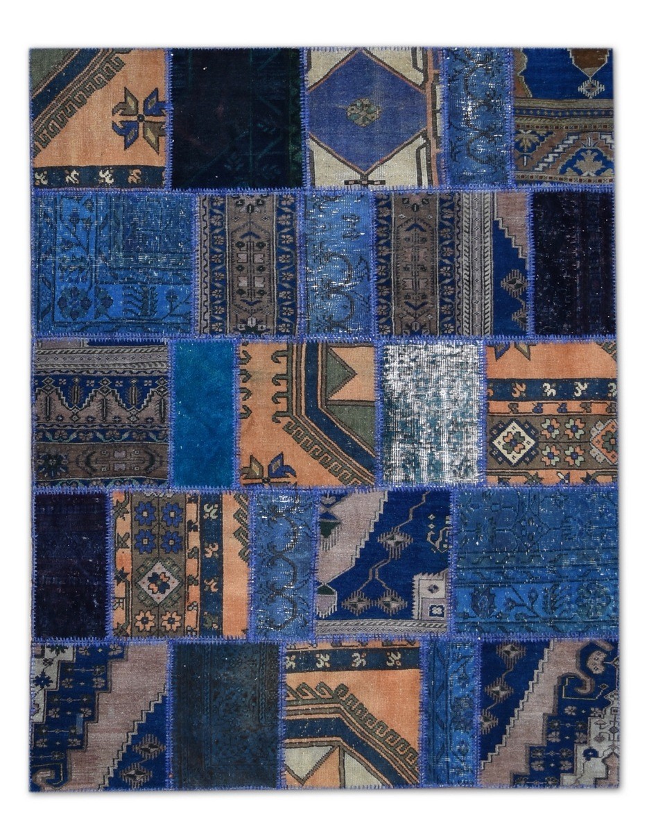 Patchwork Overdyed Rug uses vintage rug pieces, Hand Knotted
