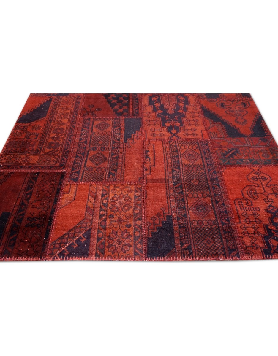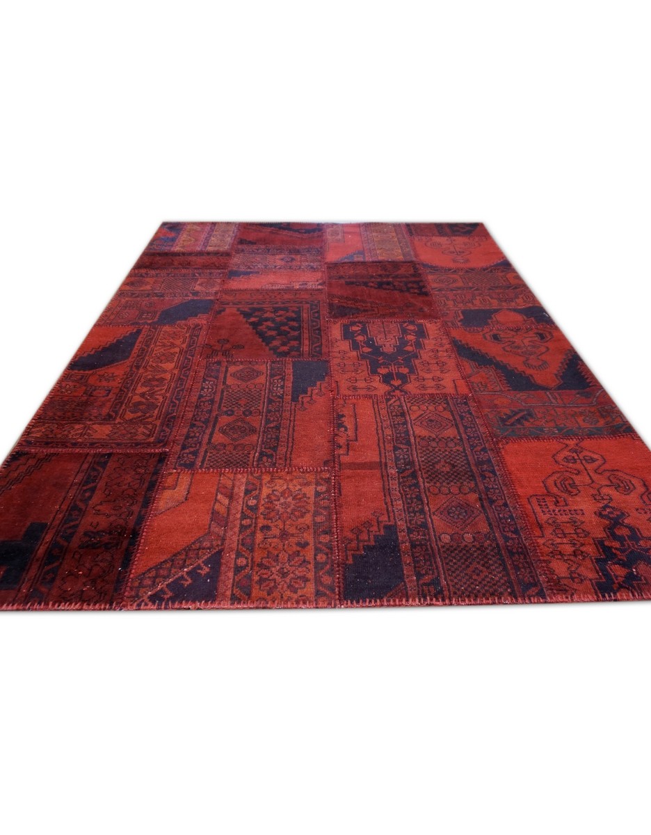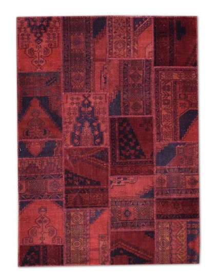 Patchwork Overdyed Rug uses vintage rug pieces, Hand Knotted